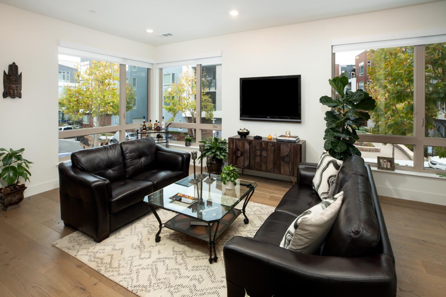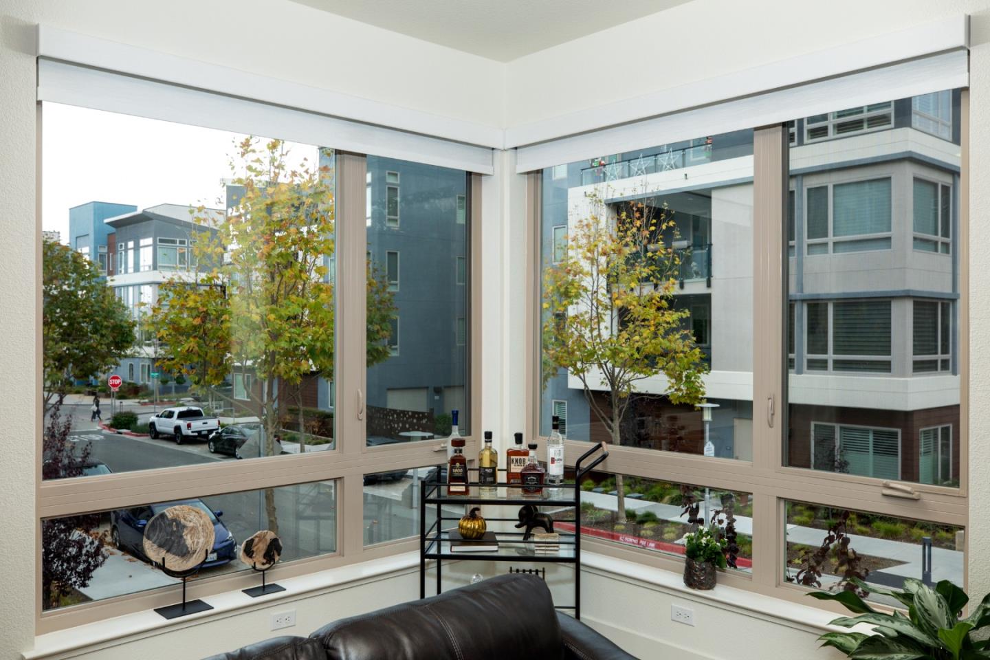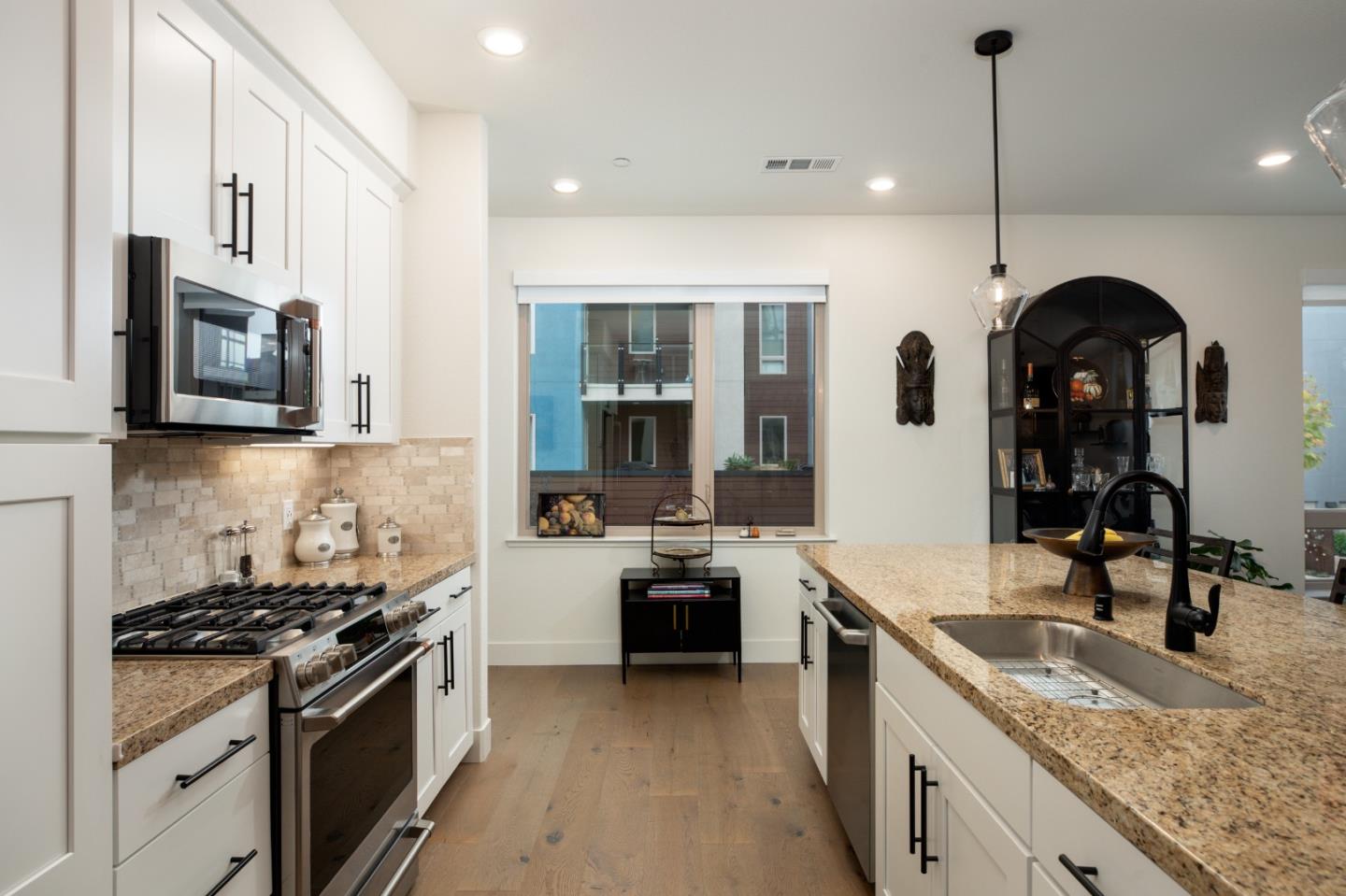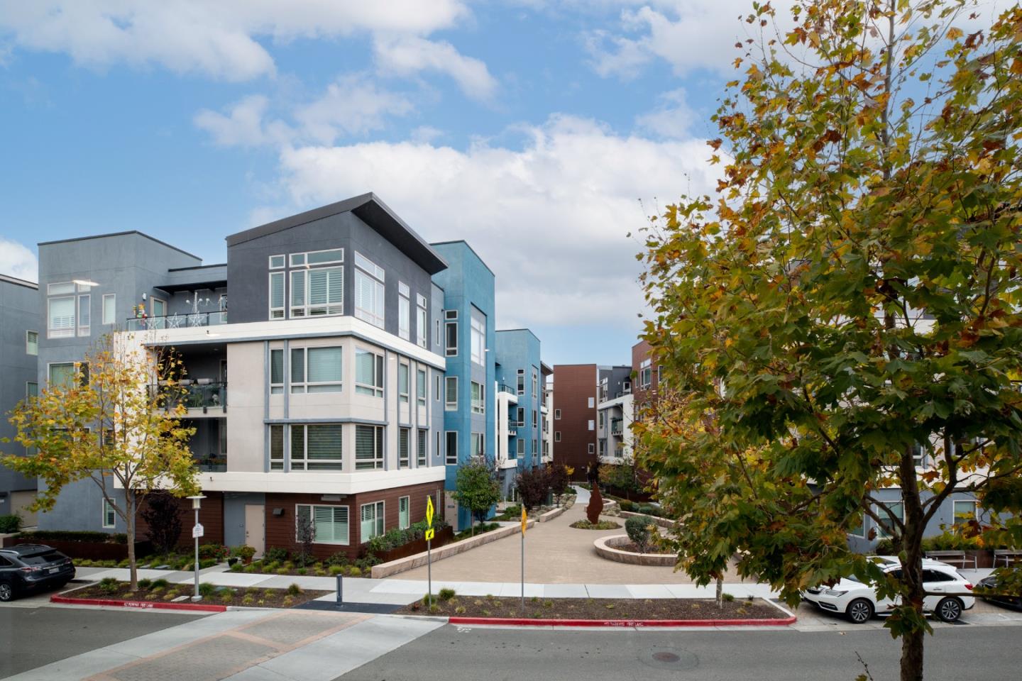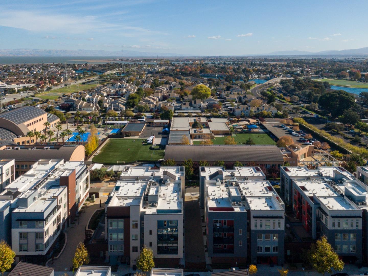 Active 55+ living at Foster Square, a condominium community in the heart of Foster City just steps to everything. This rarely available corner unit was formerly the community model home and is conveniently just off the extra-large elevator. Features include upscale finishes like high-end luxury vinyl floors, oversized windows with electronic blinds, chandelier and recessed lighting, and fine carpet in the bedroom wing. The open concept design is filled with natural light and looks out to two community Art Walks as well as wintertime views reaching out to Foster Citys iconic lagoon. A gourmet kitchen has island counter seating, granite counters, and all stainless steel appliances including a 6-burner gas range. The spacious one-level floor plan has 3 bedrooms and 2 baths with a lovely primary suite that includes a large walk-in closet and en suite bath with curbless shower. A standout feature is the exceptionally large 2-car tandem garage, complete with dual private entrances and extra space for storage, fitness equipment, or even a wine cellar. Every amenity surrounds this home, from cafes to restaurants, myriad social and fitness activities, as well as the library and boating on the lagoon.