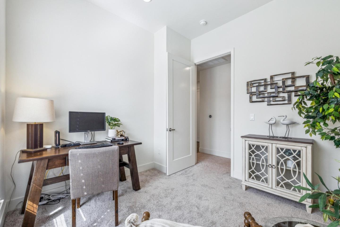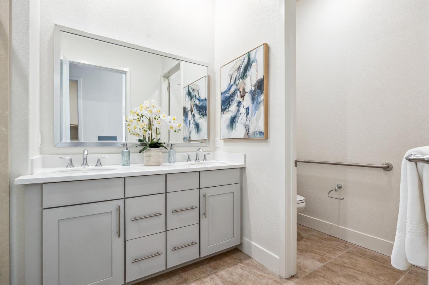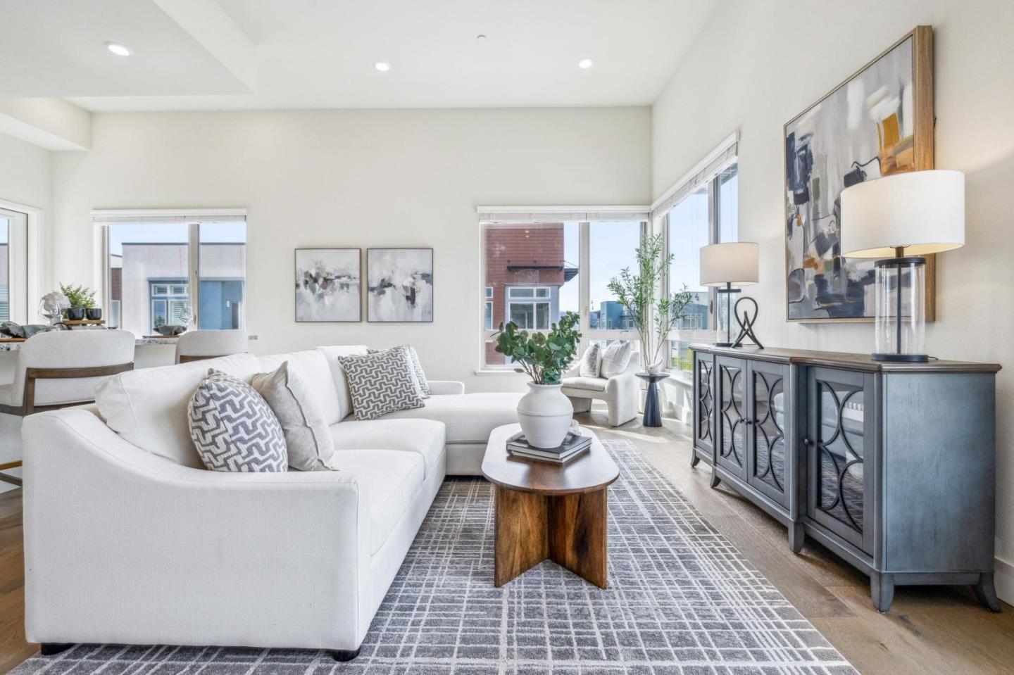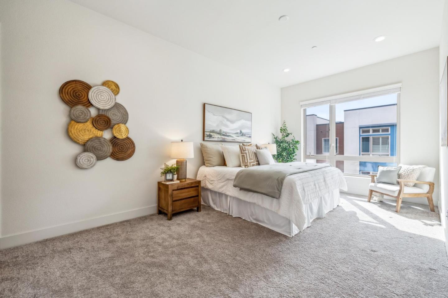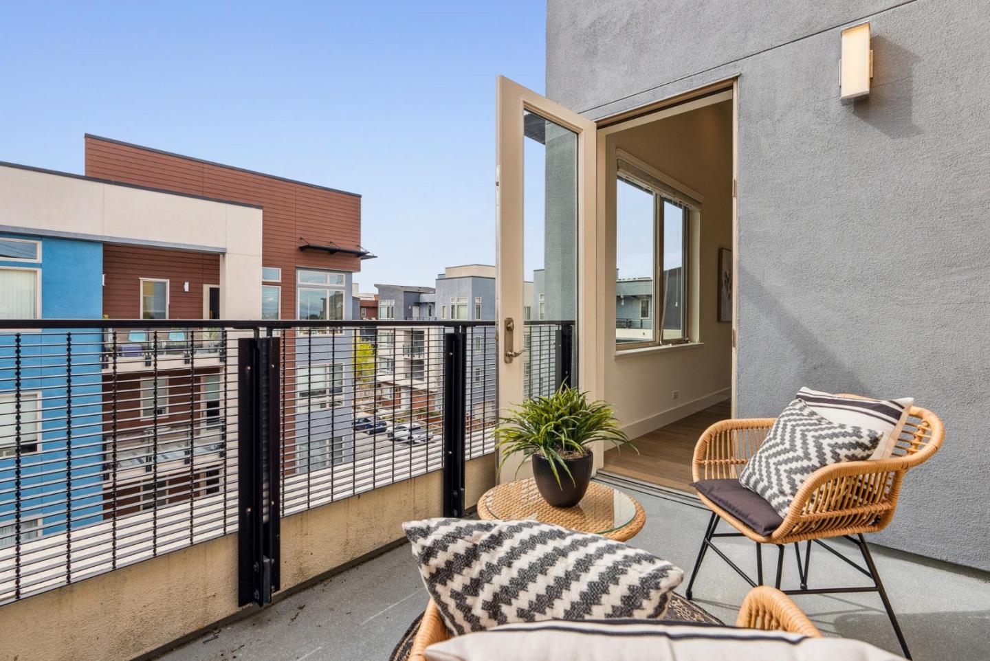 Rarely available top-floor corner unit at Foster Square, an active 55+ living community in the heart of Foster City just steps to everything. It features a lagoon water view and wonderful finishes including engineered wood floors, carpeted bedrooms, oversized windows, and recessed lighting. The high ceiling and open concept design are filled with natural light and has a wonderful private patio for fresh-air living. A gourmet kitchen has island counter seating, granite counters, and all stainless steel upscale appliances including a gas range. The spacious one-level floor plan has 3 bedrooms and 2 baths with a lovely primary suite that includes a large walk-in closet and en suite bath with curbless shower. Every amenity surrounds this home, from cafes to restaurants, grocery store to postal office, myriad social and fitness activities, as well as the library, community recreation center, and boating on the lagoon.