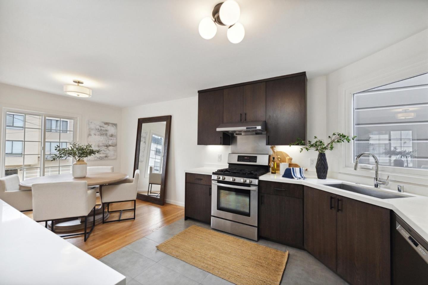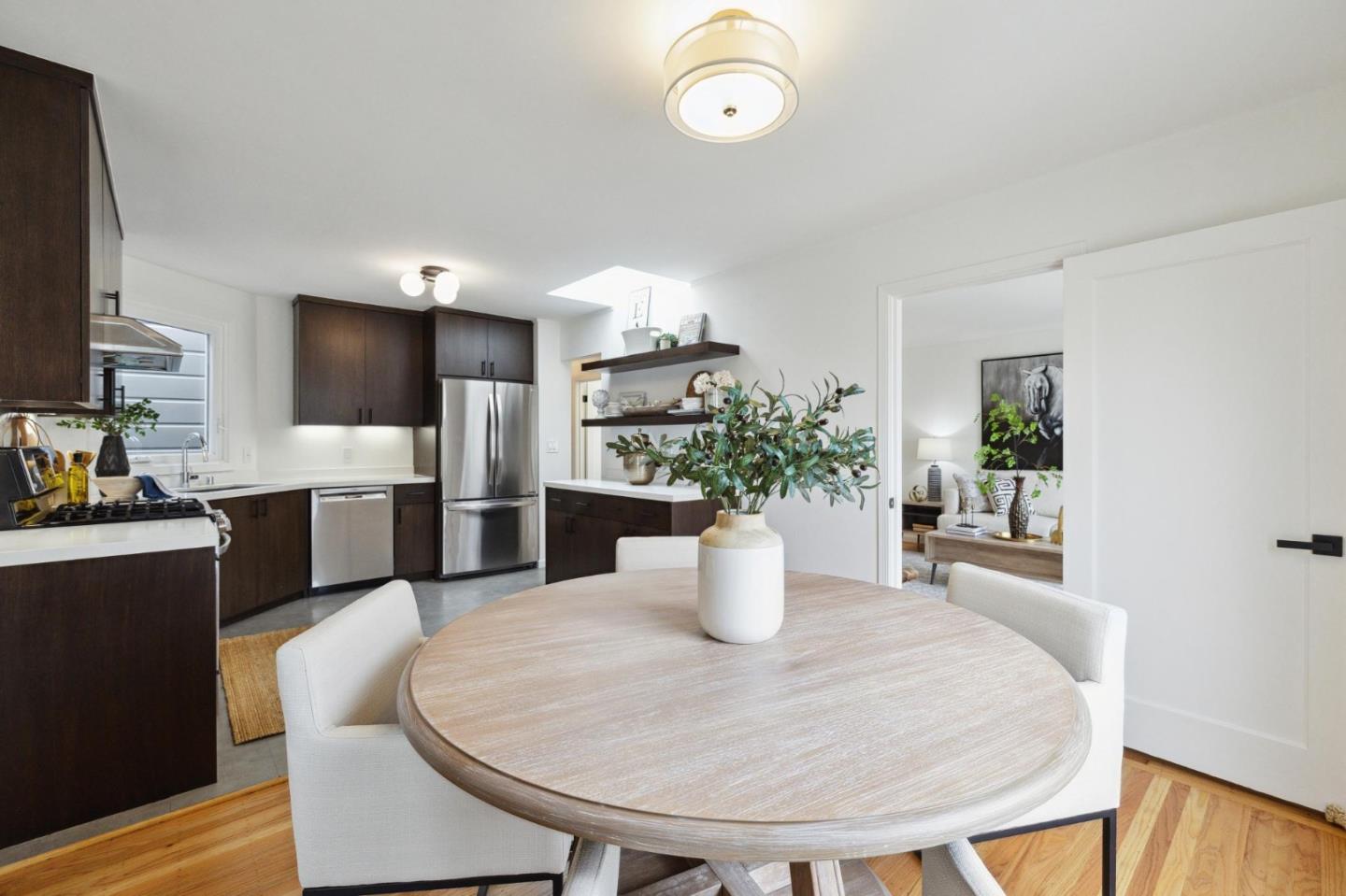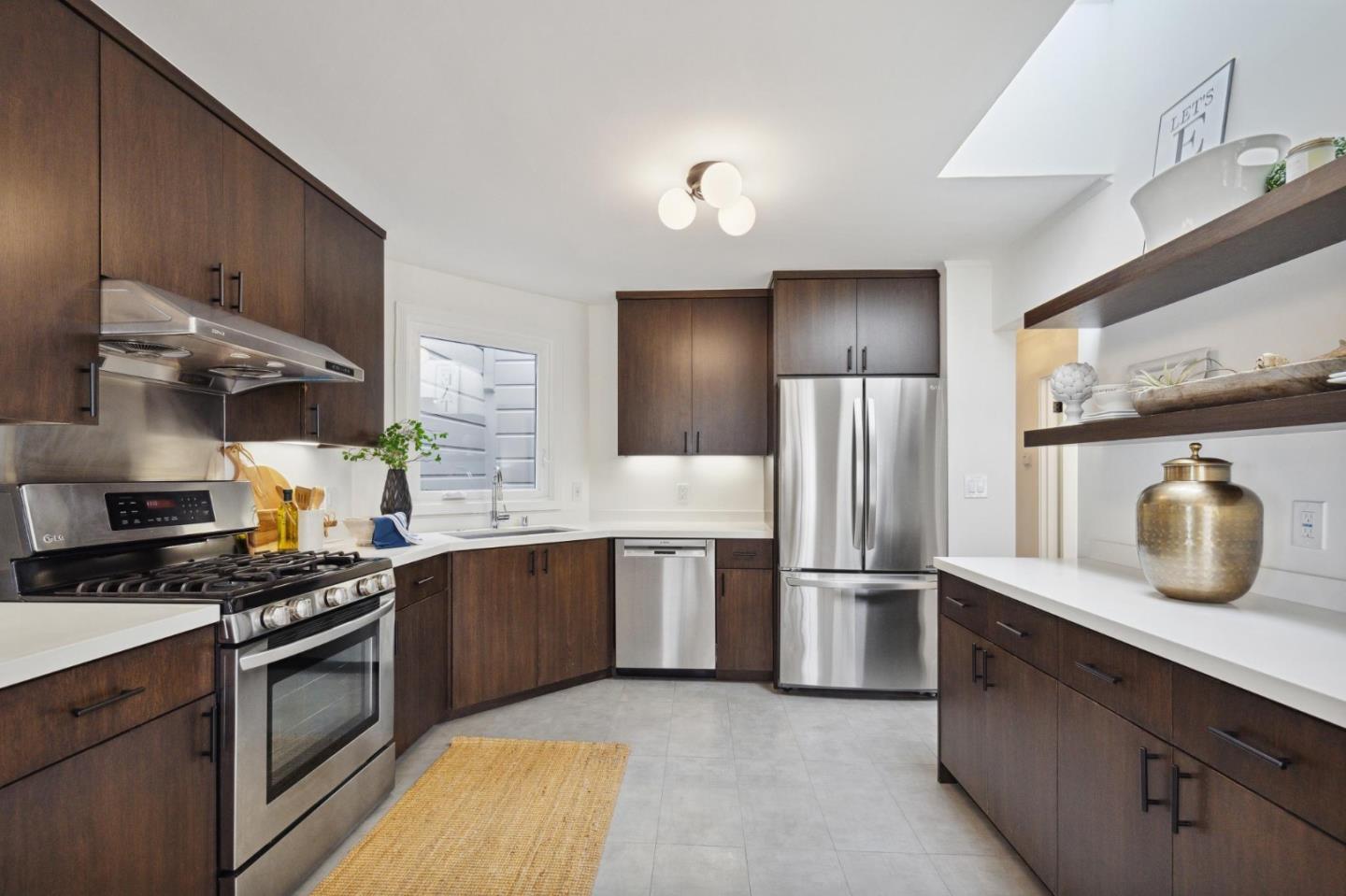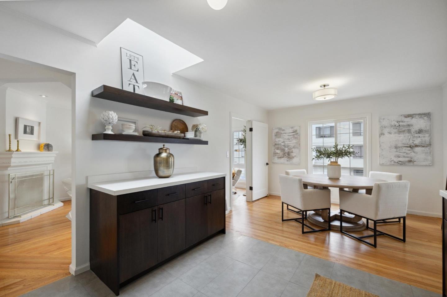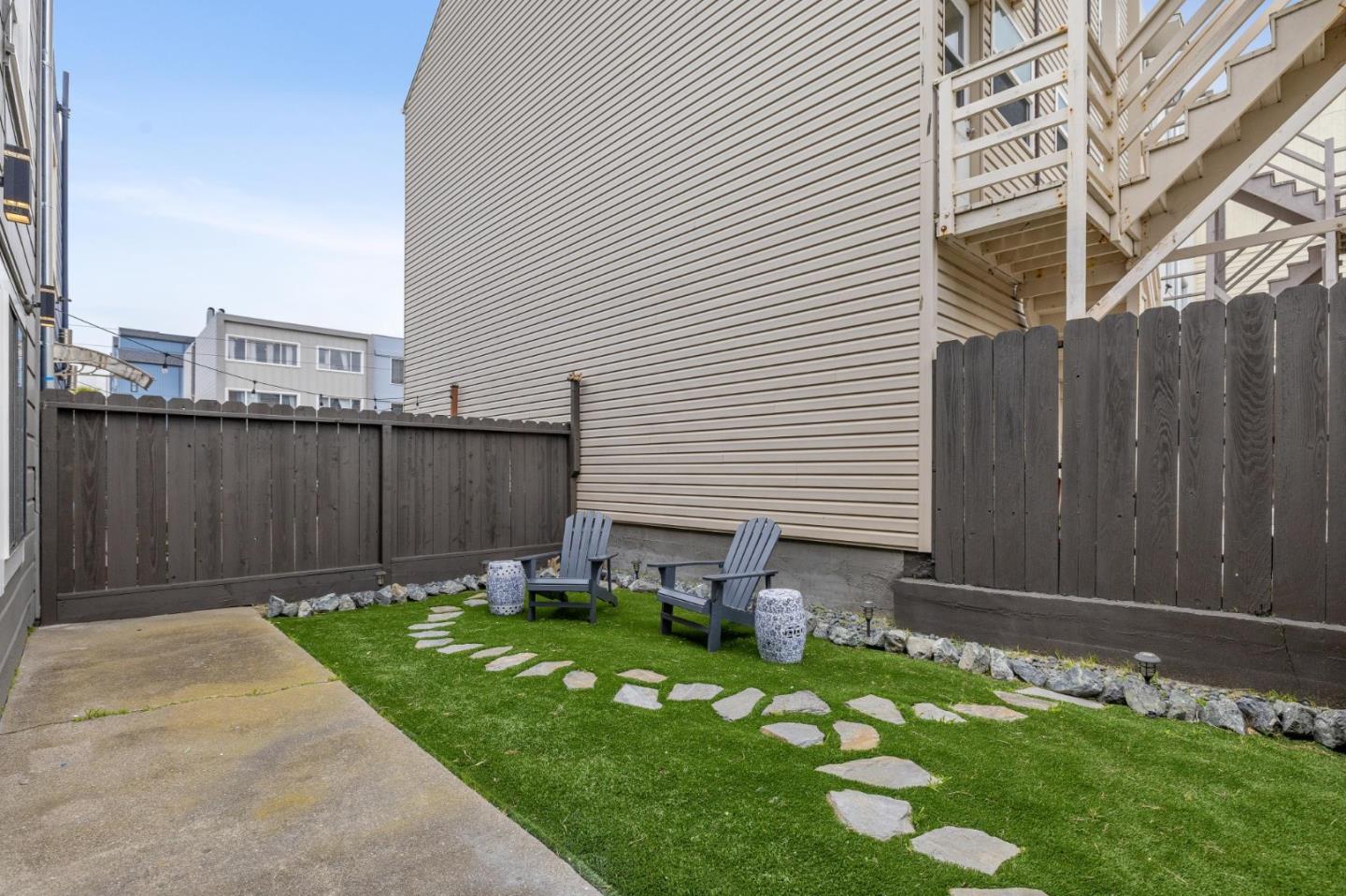 In the low-key Outer Sunset near cafes, restaurants, markets and public transit, and a couple of blocks from Golden Gate Park and Ocean Beach, this 3BD, 2.5BA home zoned RH2 has tasteful modern updates mixed with original architectural distinctions. With 2 bedrooms, 1.5 bathrooms and public rooms on the upper level, and versatile two-room suite with full bath and kitchenette on the lower level, the home presents creative possibilities. Home attributes include the updated full kitchen and bathrooms, skylights, recessed lighting, new light fixtures, refinished oak floors, quartz and porcelain tile finishes, dual-pane windows and freshly painted interior and exterior. The layout features a bright and spacious living room with distinctive fireplace, stylish sky-lit kitchen with ample cabinetry and stainless steel appliances, sky-lit bathrooms with streamlined elegance, bedrooms overlooking the back yard and a one-car garage with washer, dryer and access to the low-maintenance back yard.