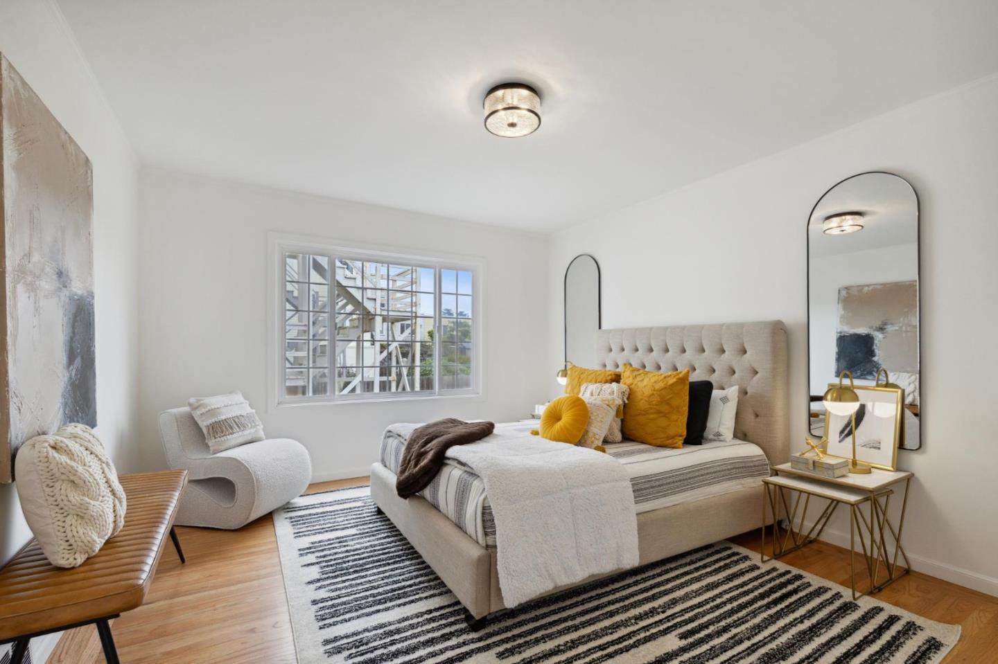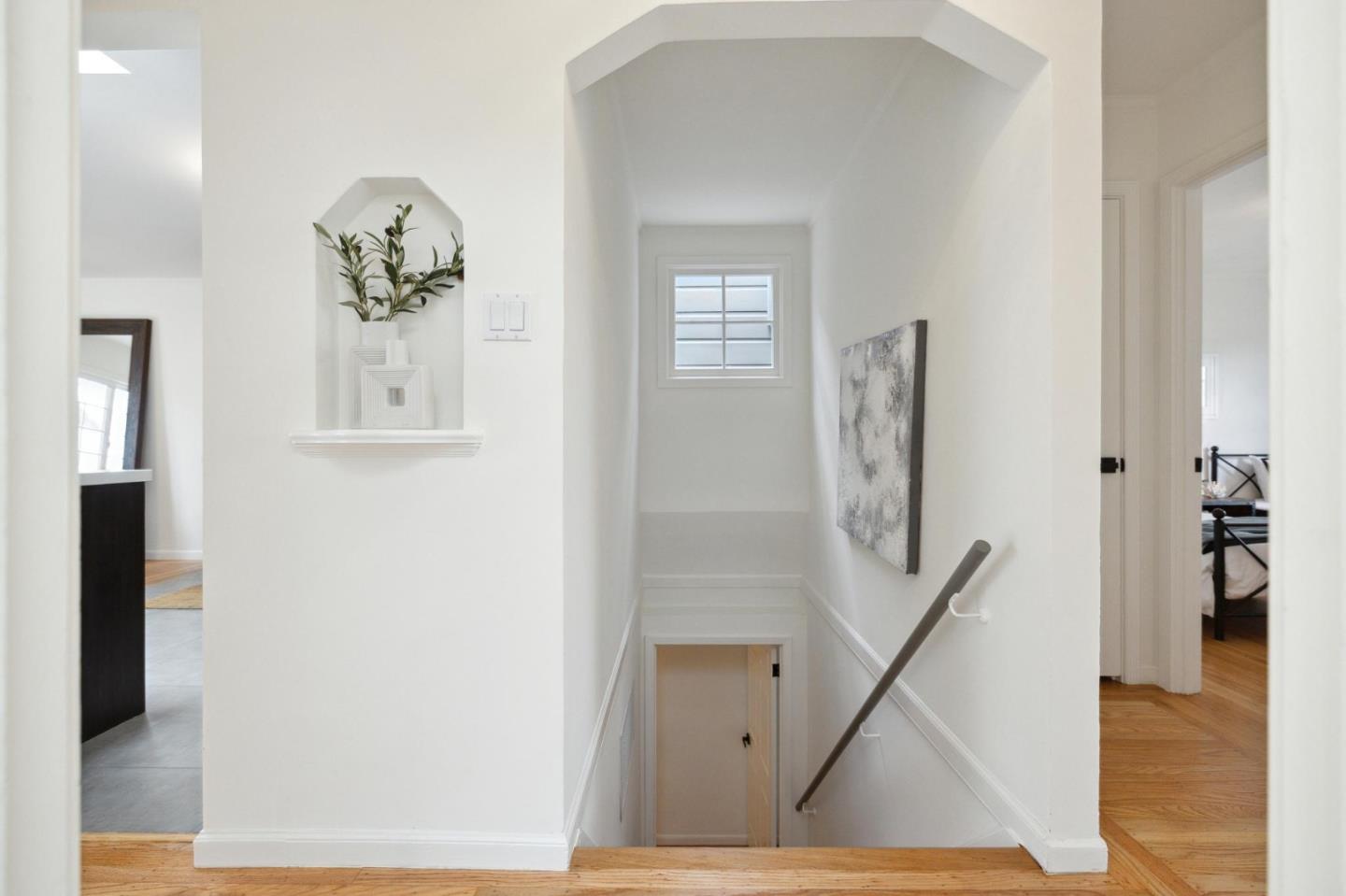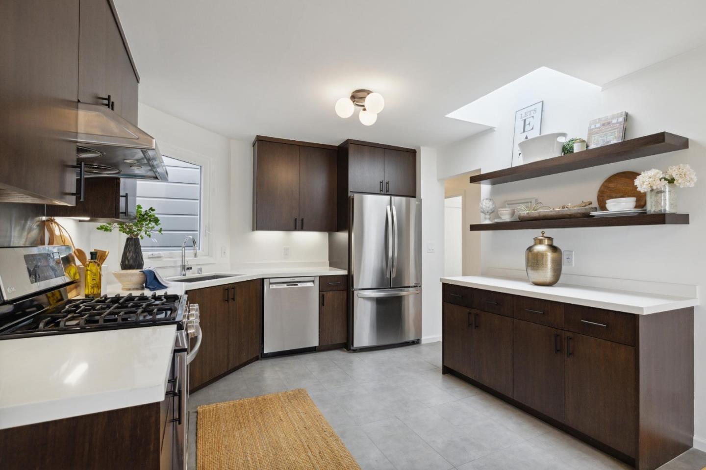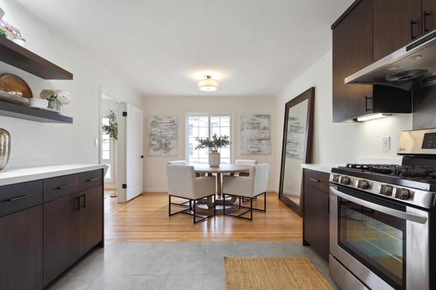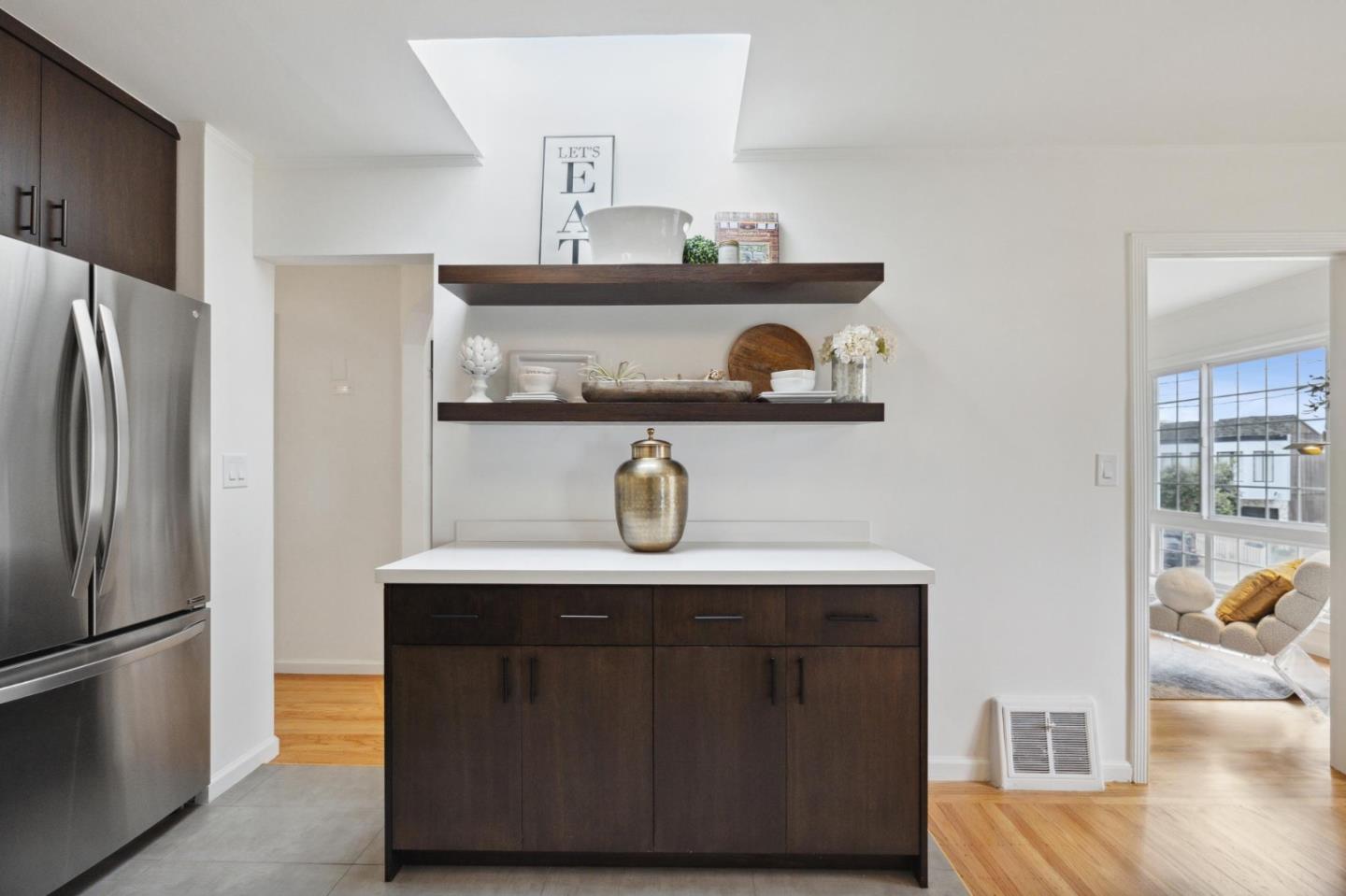 In the low-key Outer Sunset near cafes, restaurants, markets and public transit, and a couple of blocks from Golden Gate Park and Ocean Beach, this 3BD, 2.5BA home zoned RH2 has tasteful modern updates mixed with original architectural distinctions. With 2 bedrooms, 1.5 bathrooms and public rooms on the upper level, and versatile two-room suite with full bath and kitchenette on the lower level, the home presents creative possibilities. Home attributes include the updated full kitchen and bathrooms, skylights, recessed lighting, new light fixtures, refinished oak floors, quartz and porcelain tile finishes, dual-pane windows and freshly painted interior and exterior. The layout features a bright and spacious living room with distinctive fireplace, stylish sky-lit kitchen with ample cabinetry and stainless steel appliances, sky-lit bathrooms with streamlined elegance, bedrooms overlooking the back yard and a one-car garage with washer, dryer and access to the low-maintenance back yard.