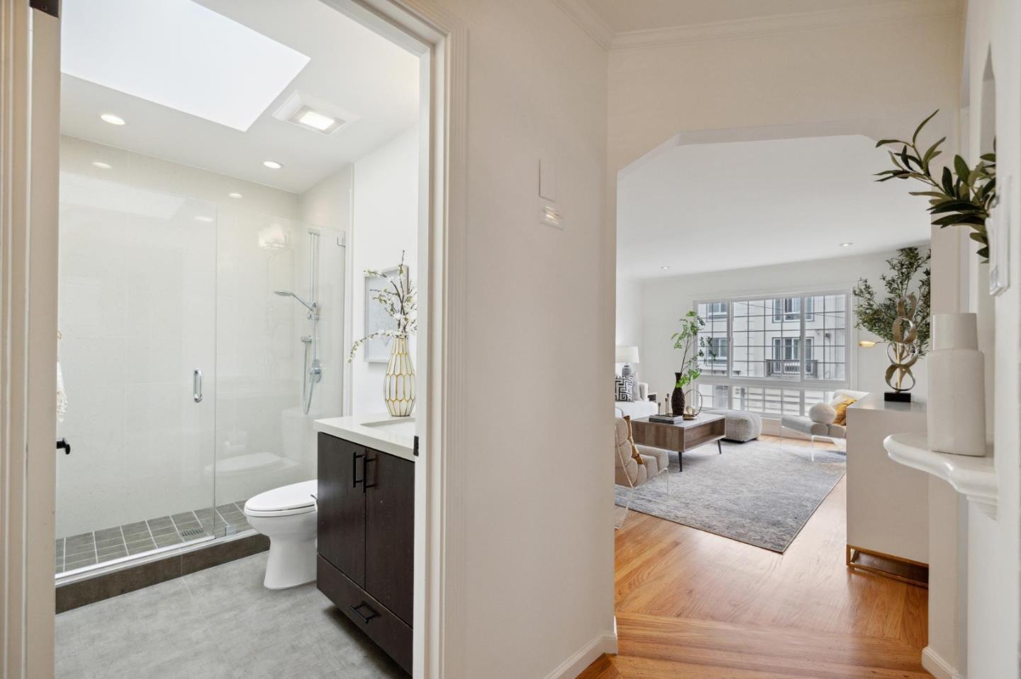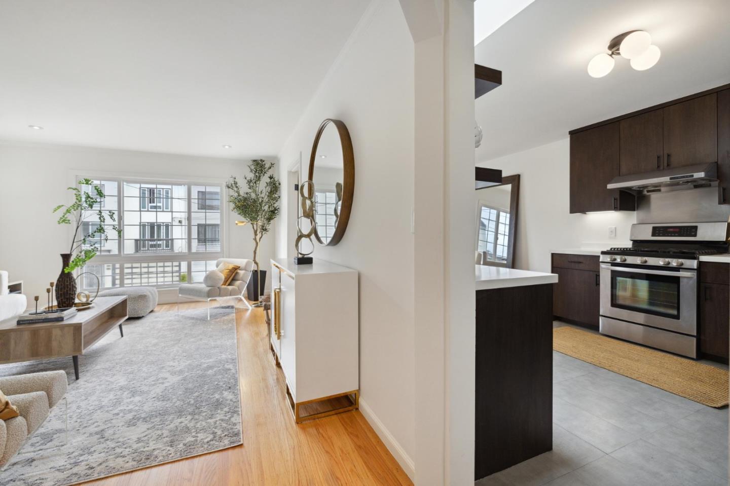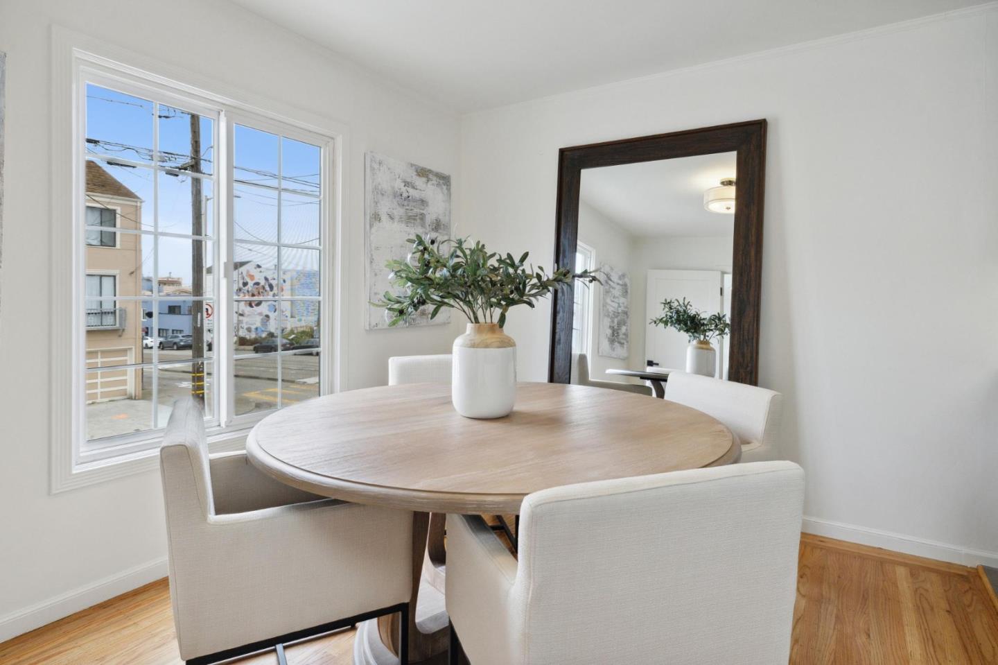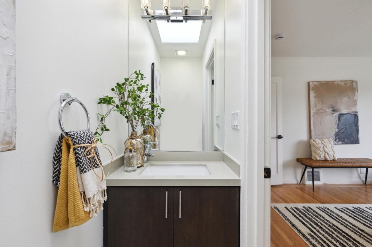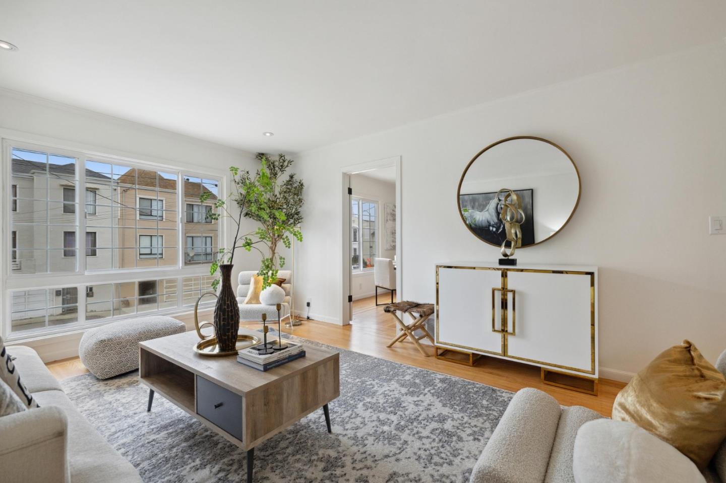 In the low-key Outer Sunset near cafes, restaurants, markets and public transit, and a couple of blocks from Golden Gate Park and Ocean Beach, this 3BD, 2.5BA home zoned RH2 has tasteful modern updates mixed with original architectural distinctions. With 2 bedrooms, 1.5 bathrooms and public rooms on the upper level, and versatile two-room suite with full bath and kitchenette on the lower level, the home presents creative possibilities. Home attributes include the updated full kitchen and bathrooms, skylights, recessed lighting, new light fixtures, refinished oak floors, quartz and porcelain tile finishes, dual-pane windows and freshly painted interior and exterior. The layout features a bright and spacious living room with distinctive fireplace, stylish sky-lit kitchen with ample cabinetry and stainless steel appliances, sky-lit bathrooms with streamlined elegance, bedrooms overlooking the back yard and a one-car garage with washer, dryer and access to the low-maintenance back yard.