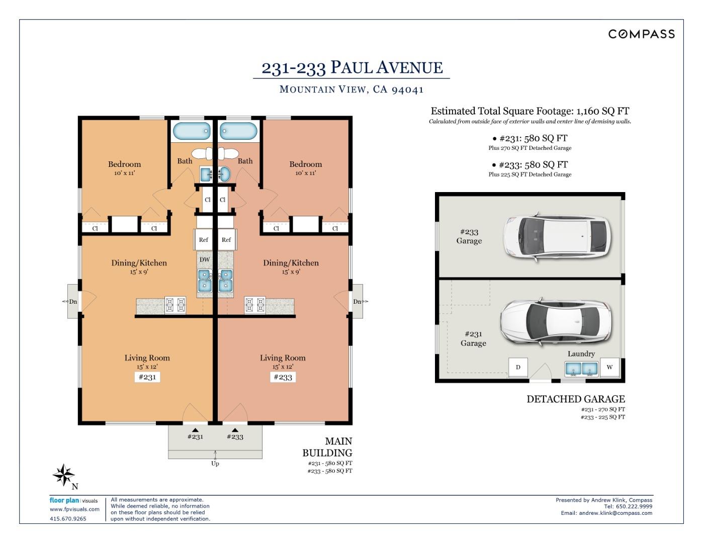 INCOME OPPORTUNITY--Duplex in highly sought-after Old Mountain View within strolling distance of trendy downtown pubs, eateries, shopping, Farmers Market, Caltrain, Eagle Park and lively local events. This mirror-image duet comprises units with 1BD, 1BA, an eat-in kitchen with outdoor access, living room, bedroom with built-in storage, bathroom with shower over tub, and one parking space in a detached two-car garage with washer and dryer. Units may have carpeting, vinyl and/or hardwood flooring. Unit 231: Includes a fridge, electric range, dishwasher, an updated bathroom and a small side yard. Leased. Current Rent: $2,730. Unit 233: Includes a gas range and fridge. Leased. Current Rent: $2,467. Units have separate PG&E meters. Pro Forma is available. This premium downtown location is in proximity to major employers, including Google, Microsoft, Meta, Apple, Great America and NASA, and thoroughfares for traveling throughout the Bay Area. This is as convenient as it gets!