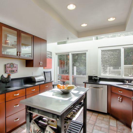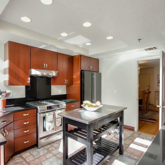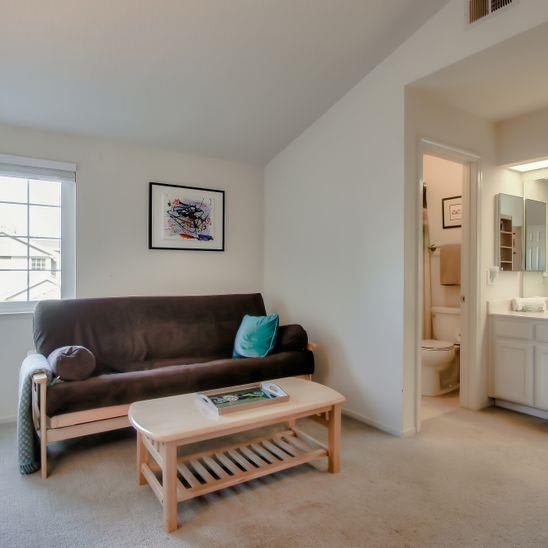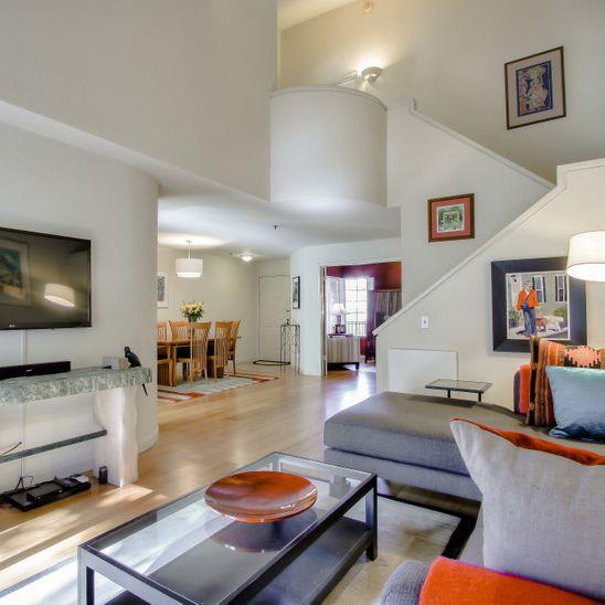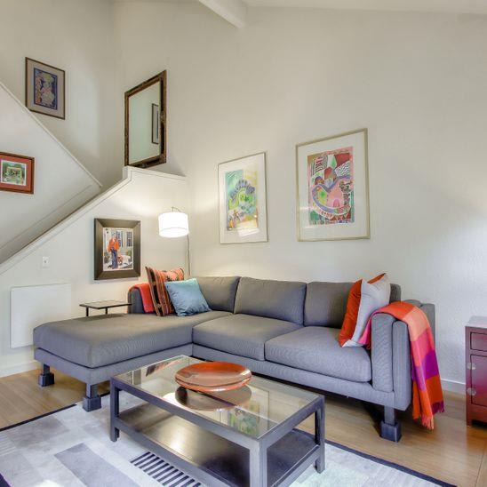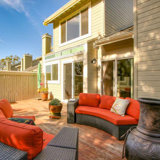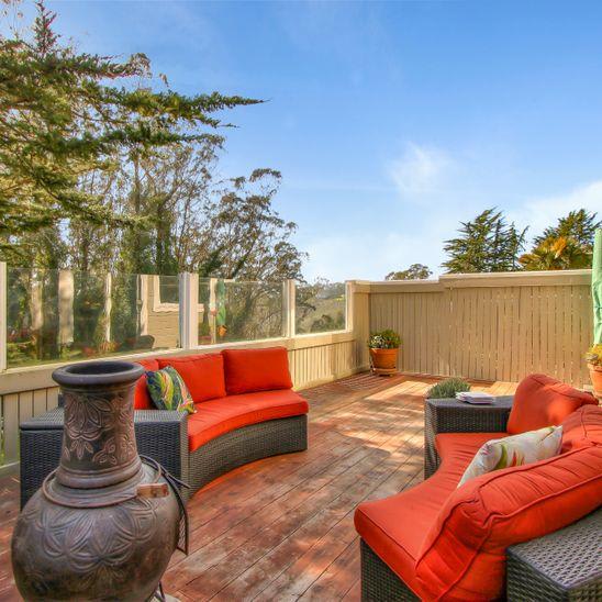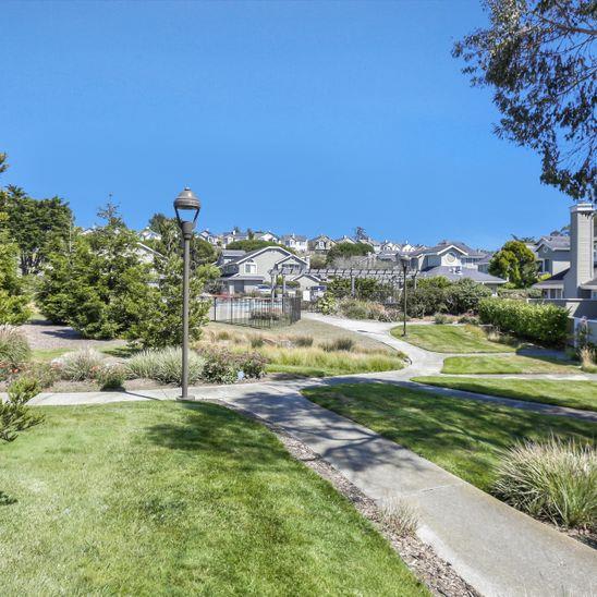 Beautifully remodeled townhouse on San Bruno mountain with two bedrooms plus a den/bonus room on the main level that could be used as an office or 3rd bedroom & an adjacent full bath. Situated in a park-like complex surrounded by trees and manicured grounds, this home features a private gated patio entrance, stunning living room/dining room combination with cathedral ceilings, bamboo floors, and a gas fireplace. Gorgeous remodeled kitchen w/custom-built cherry cabinets, Corian countertops, and top-of-the-line appliances. 2 ensuite upper-level bedrooms including a spacious master suite with views, walk-in closet & vanity with dual sinks. Second bedroom with its own bath. Access from living room & kitchen to a large deck that overlooks the mountains & trees. Laundry room, double-paned windows & many more special upgrades. 2-car garage. Shows beautifully! Well managed complex in a beautiful setting. On the border with SF with easy access to shops and Bart & across a popular trail. Pool/spa.