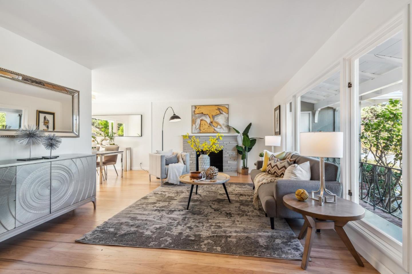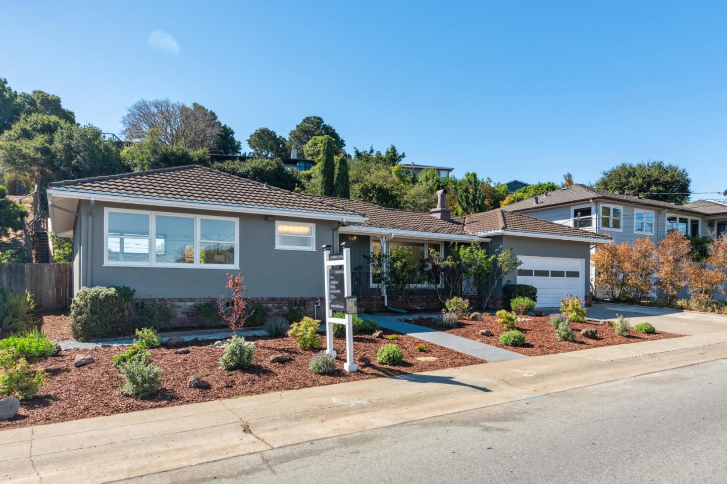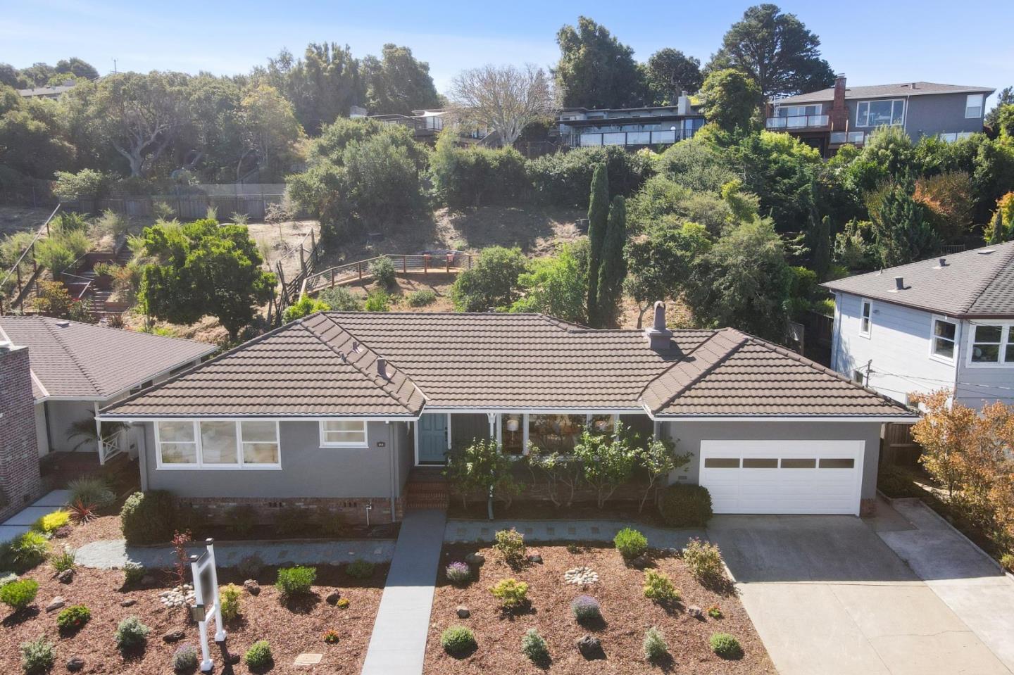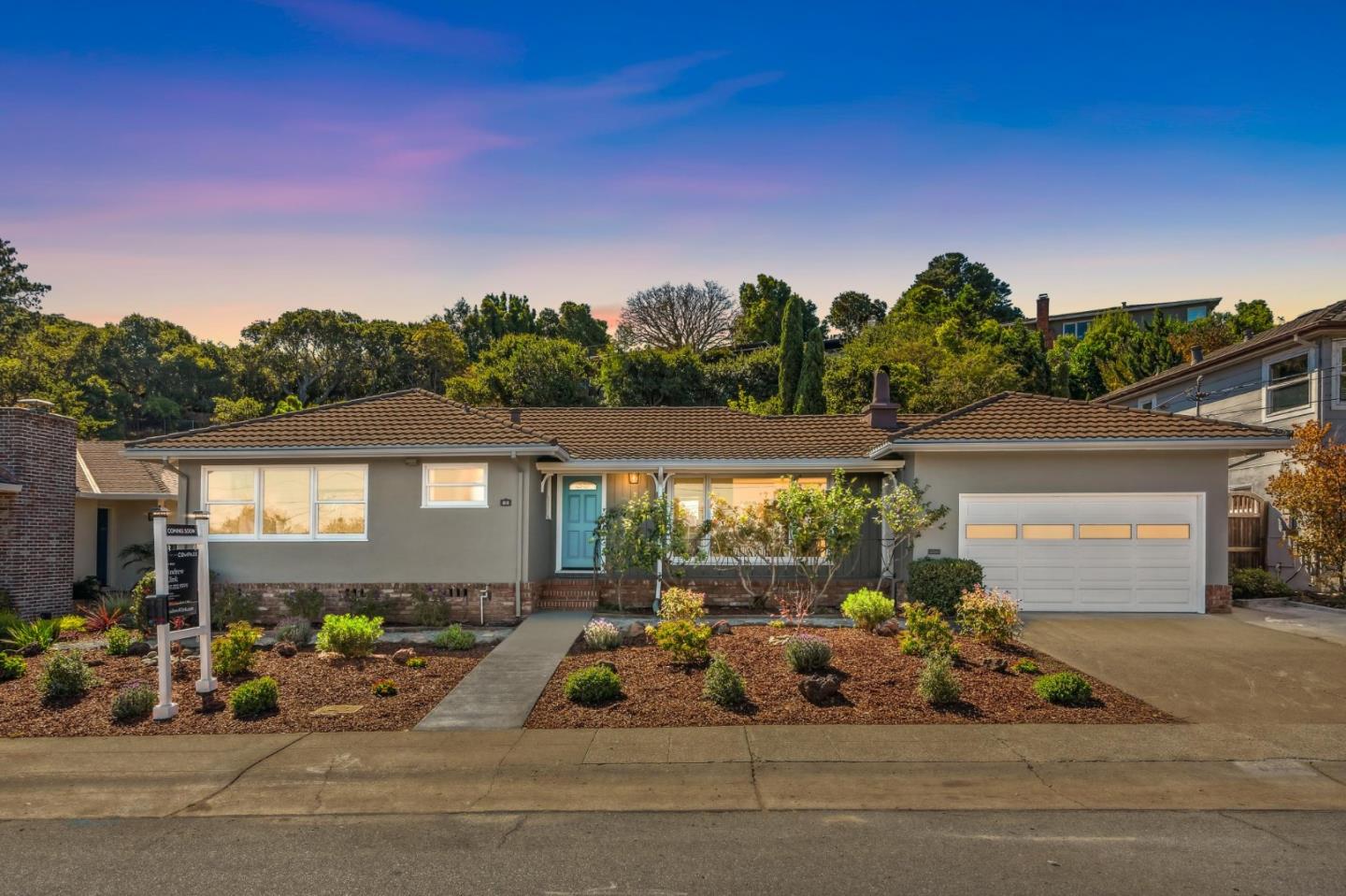 Beautifully refreshed home with San Francisco Bay Area views in scenic Westwood Knolls. Carved into the hilly terrain, the 8900+/- sf lot features enlivened front and back yard landscapes with revitalized hillside plateau with a panorama from San Francisco to San Mateo Bridge and Diablo Mountain range. This mid-century charmer boasts refinished oak floors, remodeled bathrooms, partially updated kitchen, fresh paint, quartz counters, subway tile surrounds, new hardware, fixtures, lighting, electrical outlets, and more. The single-level layout flows from the foyer to the spacious living room with fireplace and wall of windows, dining room with French door to the backyard patio and lawn, kitchen with new quartz counters and stainless steel appliances, and hallway to three bedrooms, including a suite, and two modern baths. First time on the market in over 50 years, this hillside home is only a couple miles from Hillsdale Shopping Center, Downtown San Mateo, Hwy 101 and high- tech employers.