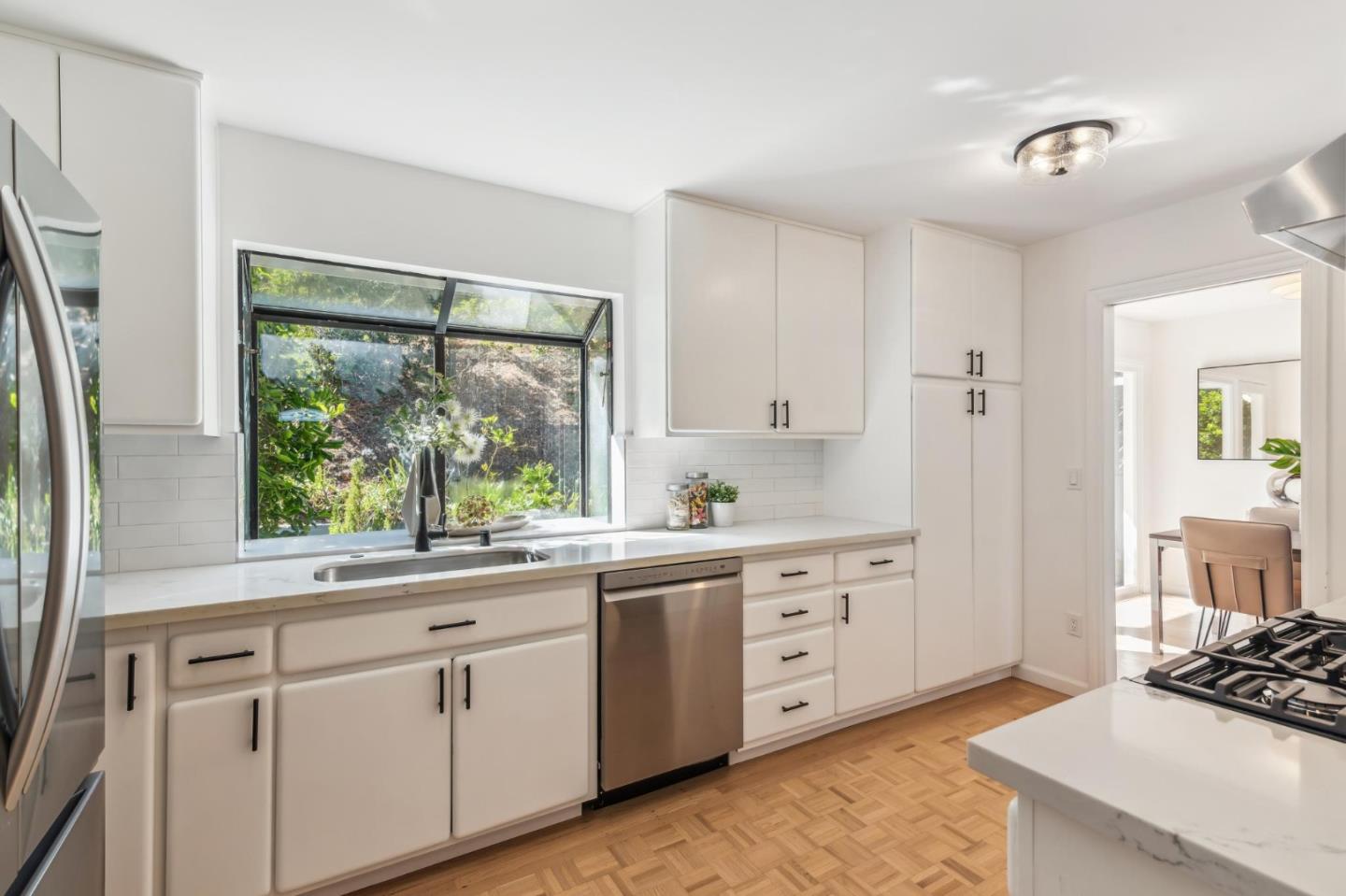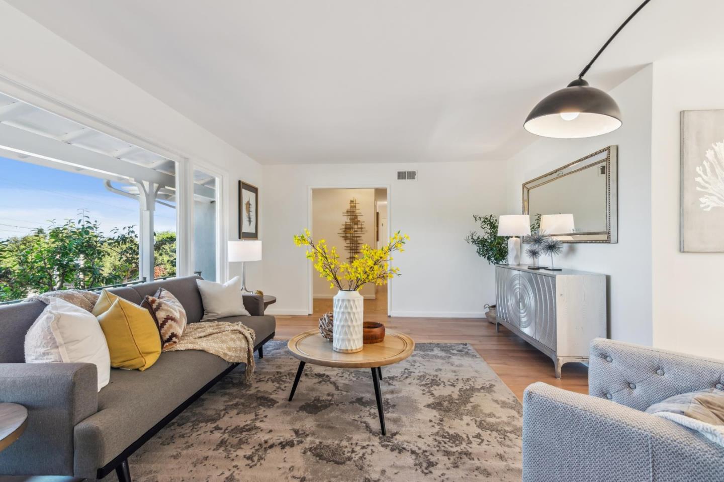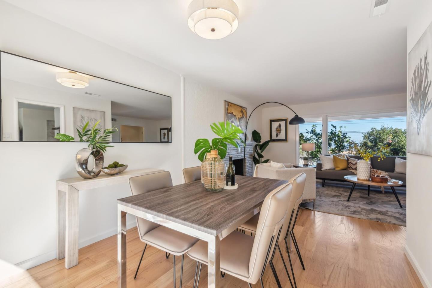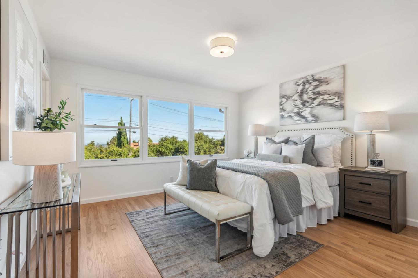 Beautifully refreshed home with San Francisco Bay Area views in scenic Westwood Knolls. Carved into the hilly terrain, the 8900+/- sf lot features enlivened front and back yard landscapes with revitalized hillside plateau with a panorama from San Francisco to San Mateo Bridge and Diablo Mountain range. This mid-century charmer boasts refinished oak floors, remodeled bathrooms, partially updated kitchen, fresh paint, quartz counters, subway tile surrounds, new hardware, fixtures, lighting, electrical outlets, and more. The single-level layout flows from the foyer to the spacious living room with fireplace and wall of windows, dining room with French door to the backyard patio and lawn, kitchen with new quartz counters and stainless steel appliances, and hallway to three bedrooms, including a suite, and two modern baths. First time on the market in over 50 years, this hillside home is only a couple miles from Hillsdale Shopping Center, Downtown San Mateo, Hwy 101 and high- tech employers.