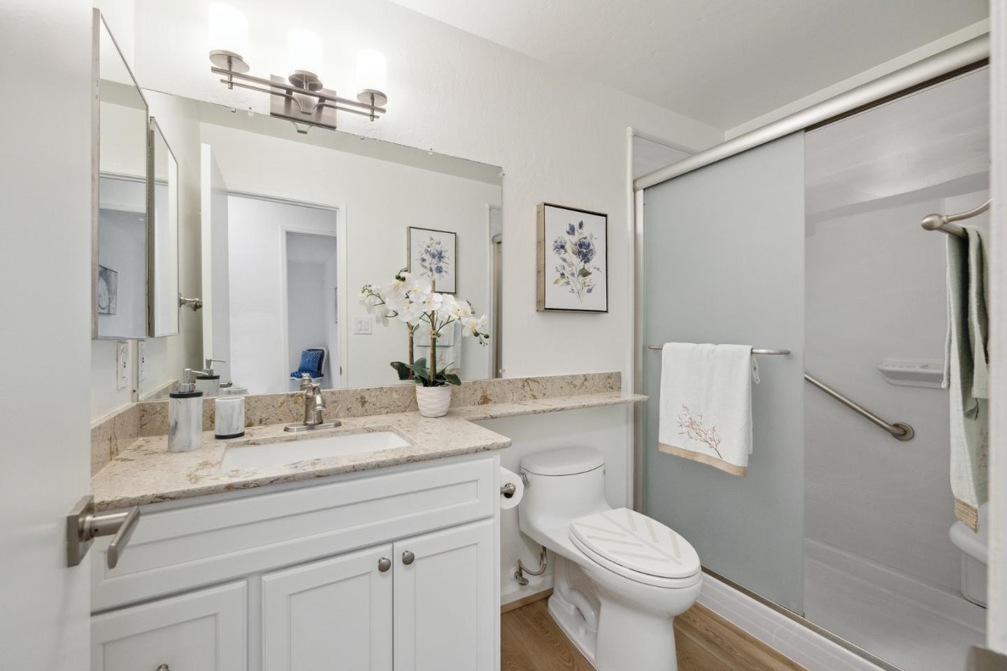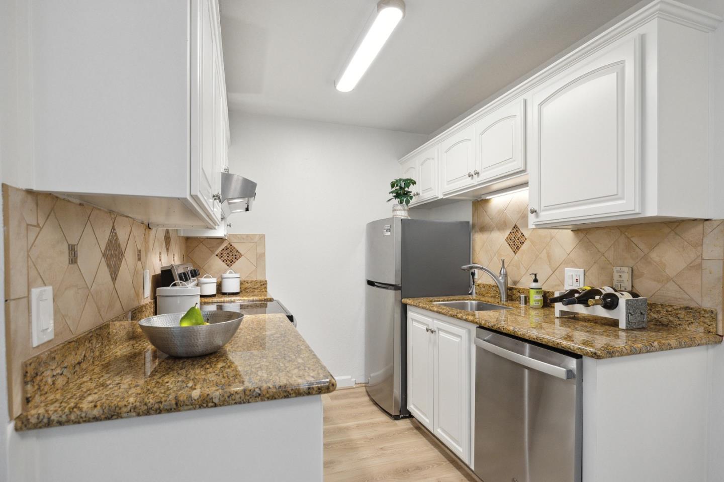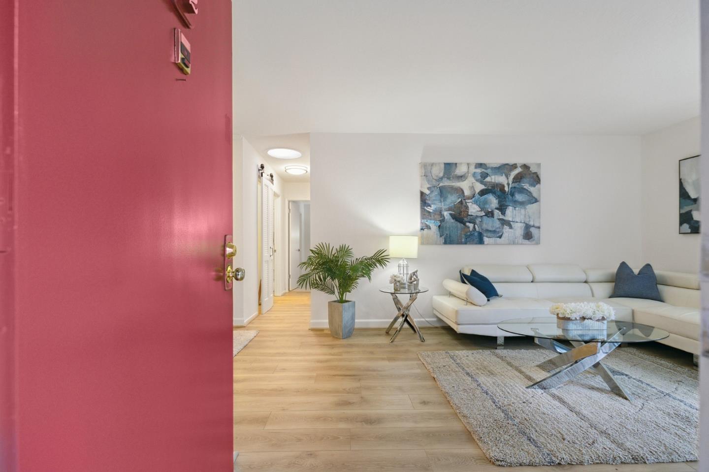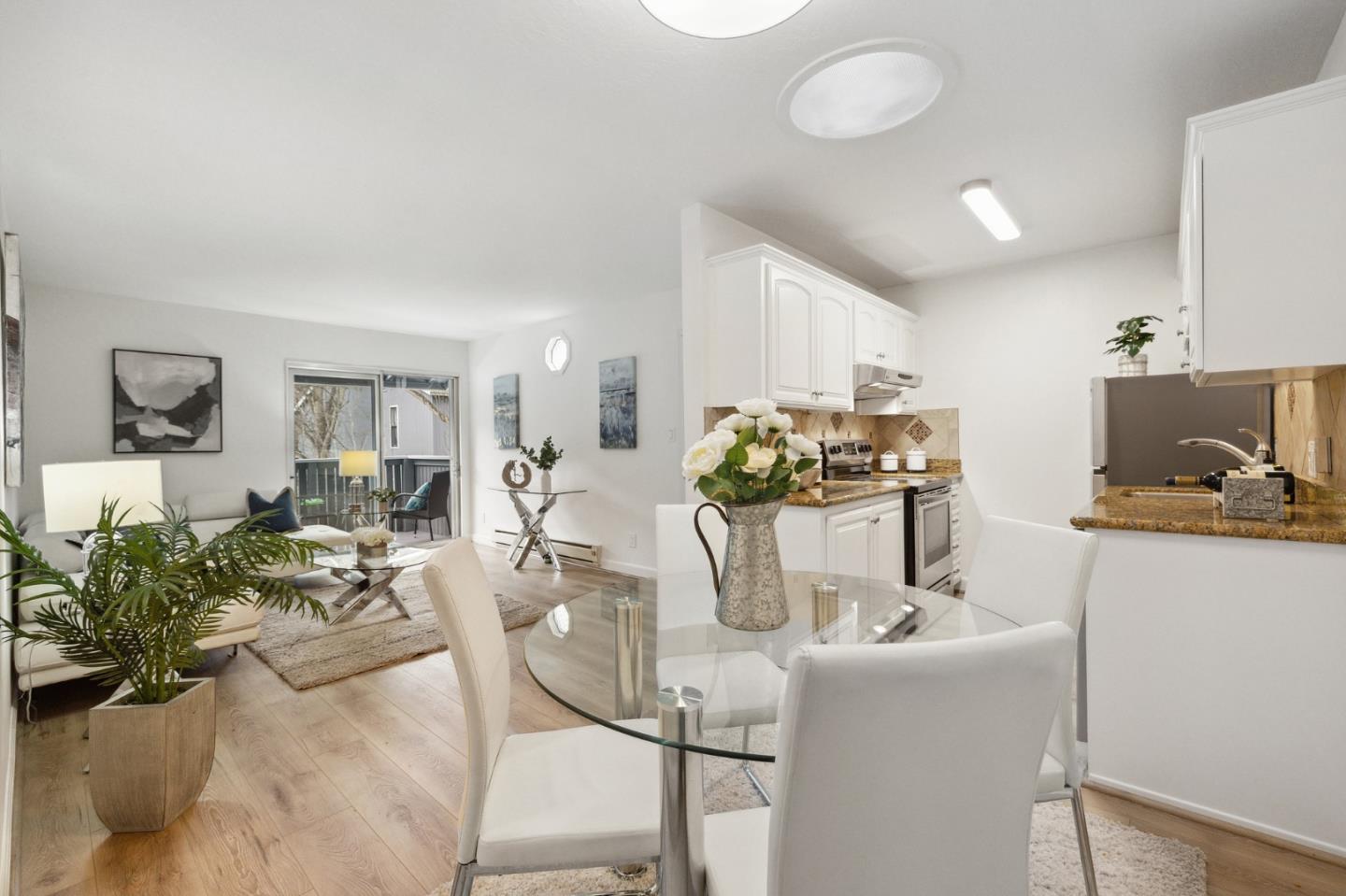 Stroll to a multitude of urban conveniences from this top-floor, corner-unit condominium in the Peninsula Place community with pools, a spa, tennis courts, exercise room and a clubhouse with kitchen. This tastefully refreshed home features new carpeting and wood laminate floors, fresh paint, new light fixtures, electrical switches and outlets, and designer details. The layout includes a living room with balcony, granite-finished kitchen with stainless steel appliances, walk-in pantry and open dining area, bedrooms with large closets, and a bathroom with tub-shower combo. One deeded carport parking spot is assigned to the unit. This ideal urban location is just a couple blocks from Peets, Starbucks, YouTube and Walmart corporate offices, Bayhill Shopping Center, Jacks Restaurant (a local favorite), Mollie Stones, Fitness 19, and Commodore Park, and within 1-4 miles from Tanforan shopping, the BART station, SFO, and hiking trails to mountaintops with stunning ocean and SF Bay views.