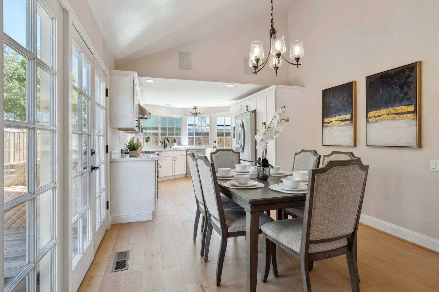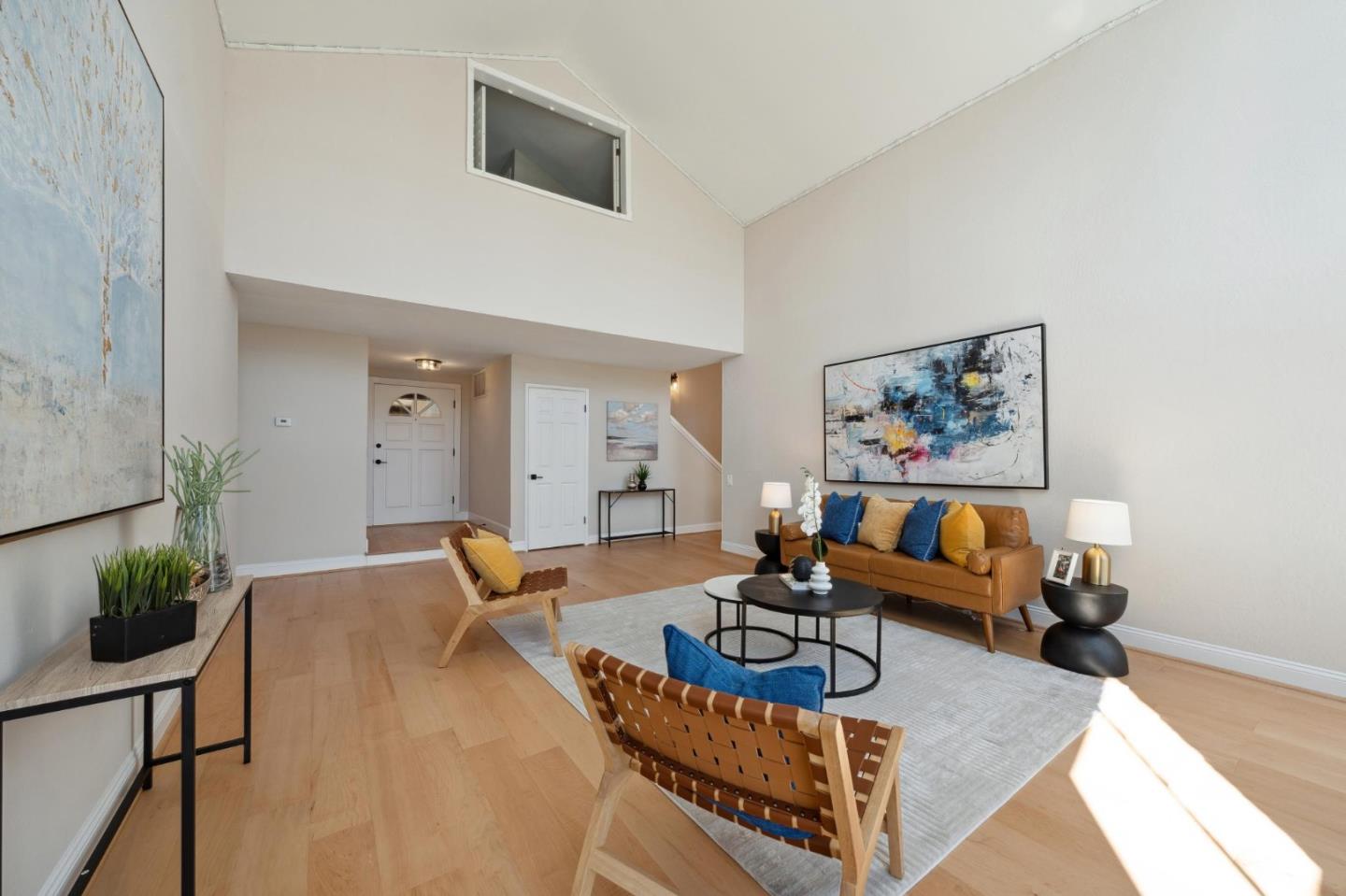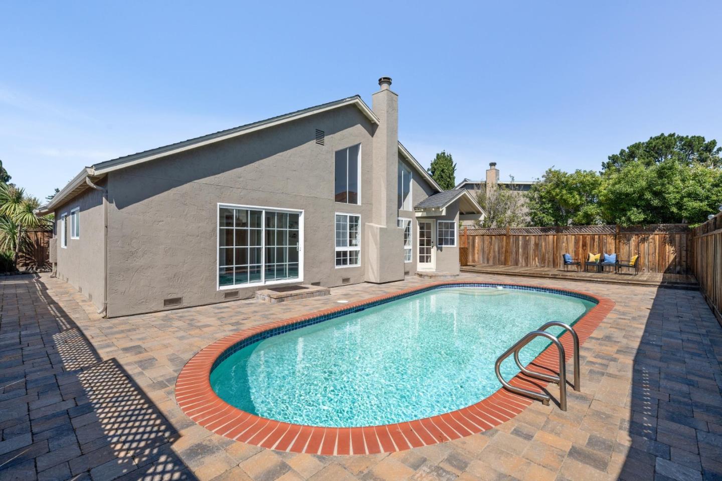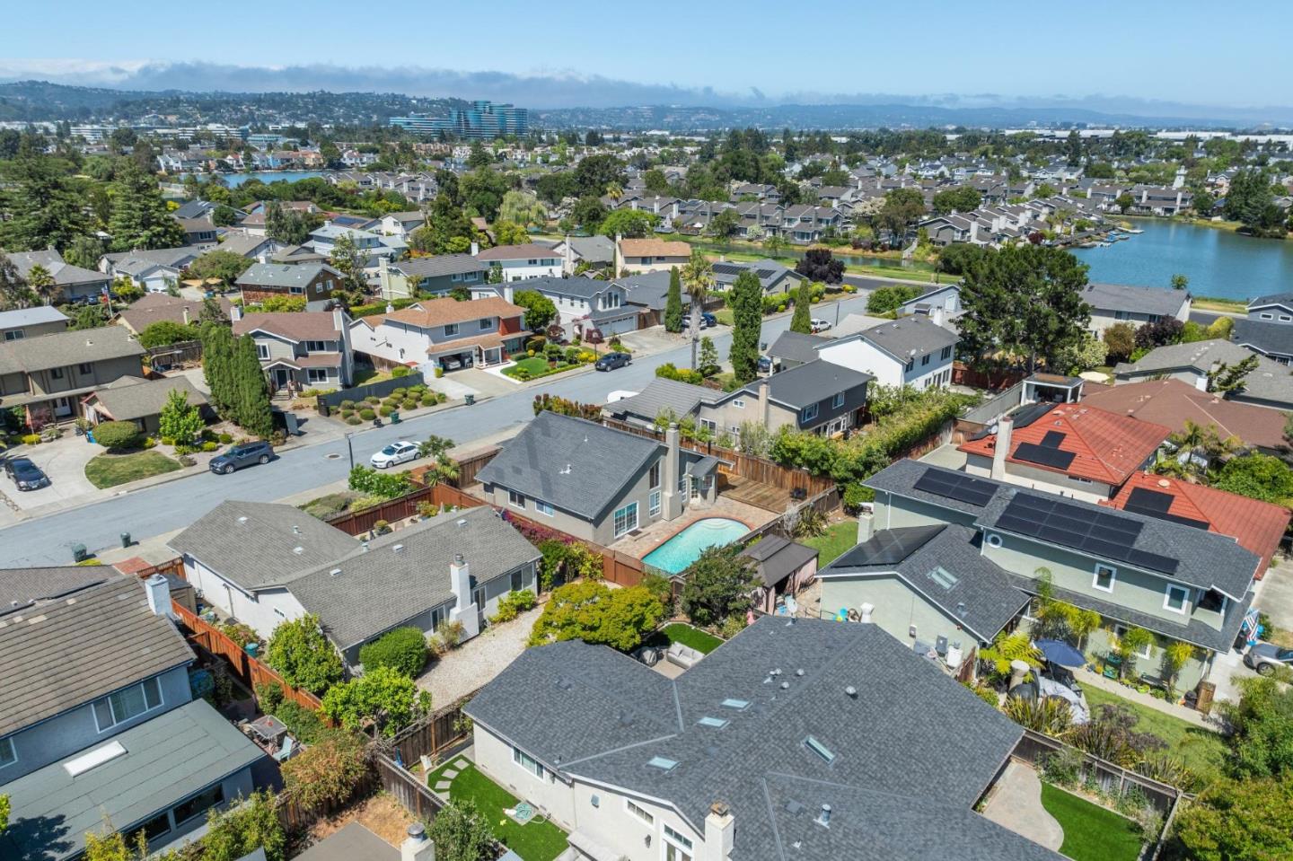 Centrally located on the Mid-Peninsula between San Francisco Bay waterways is an updated home with a dramatic living room, brand new kitchen, stylishly updated bathrooms, private family room and grounds with a pool, deck and paver patios and driveway. Drama begins at the foyer with a striking view of the living room with cathedral ceiling, focal-point fireplace and floor-to-ceiling windows with views of the sparkling pool. Softly hued walls, white doors and trim, black hardware, wood laminate flooring and plush carpeting create the backdrop for grand living spaces, lovely entertaining venues and private bedroom retreats, including a primary with sliding doors to the back patio. Updated kitchen and bathrooms feature new cabinets, fixtures, appliances, French and sliding glass doors, and tony stone and tile surfaces. An open dining area extends to a large deck, and the loft/family room provides a great space for family fun or a private office. Near Marlin Park, Nob Hill and the Bay Club.