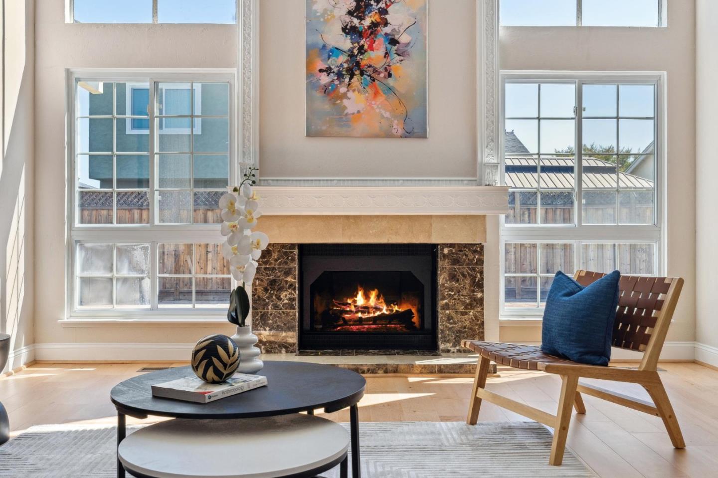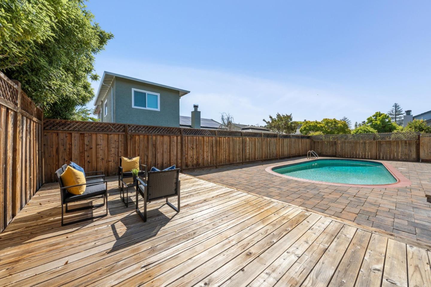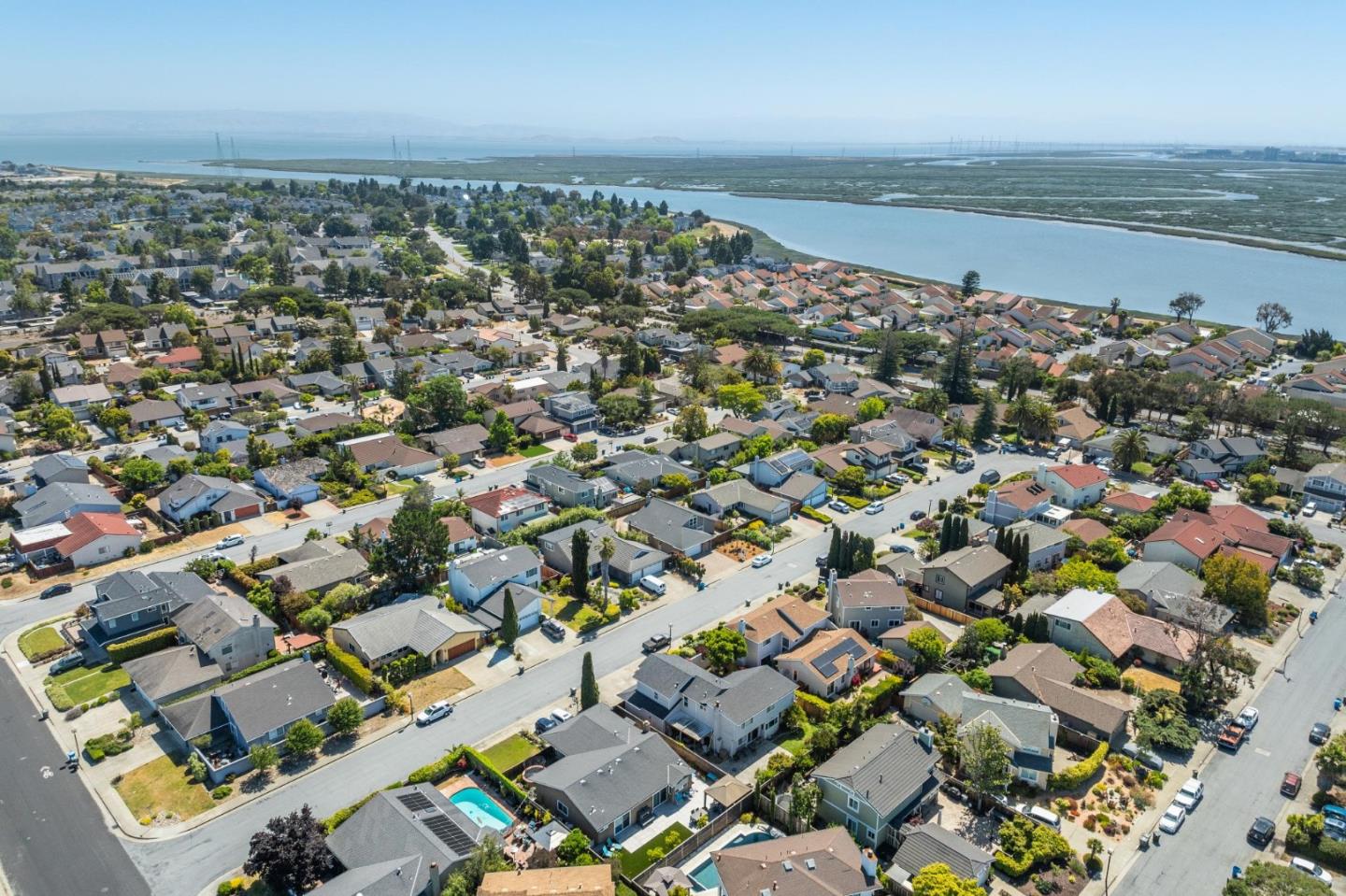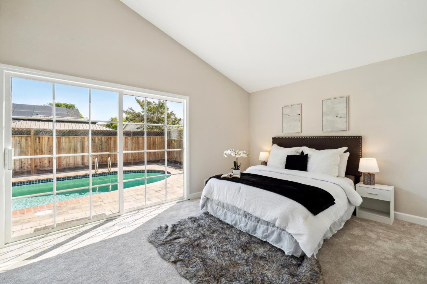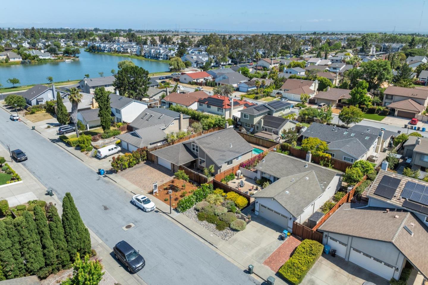 Centrally located on the Mid-Peninsula between San Francisco Bay waterways is an updated home with a dramatic living room, brand new kitchen, stylishly updated bathrooms, private family room and grounds with a pool, deck and paver patios and driveway. Drama begins at the foyer with a striking view of the living room with cathedral ceiling, focal-point fireplace and floor-to-ceiling windows with views of the sparkling pool. Softly hued walls, white doors and trim, black hardware, wood laminate flooring and plush carpeting create the backdrop for grand living spaces, lovely entertaining venues and private bedroom retreats, including a primary with sliding doors to the back patio. Updated kitchen and bathrooms feature new cabinets, fixtures, appliances, French and sliding glass doors, and tony stone and tile surfaces. An open dining area extends to a large deck, and the loft/family room provides a great space for family fun or a private office. Near Marlin Park, Nob Hill and the Bay Club.