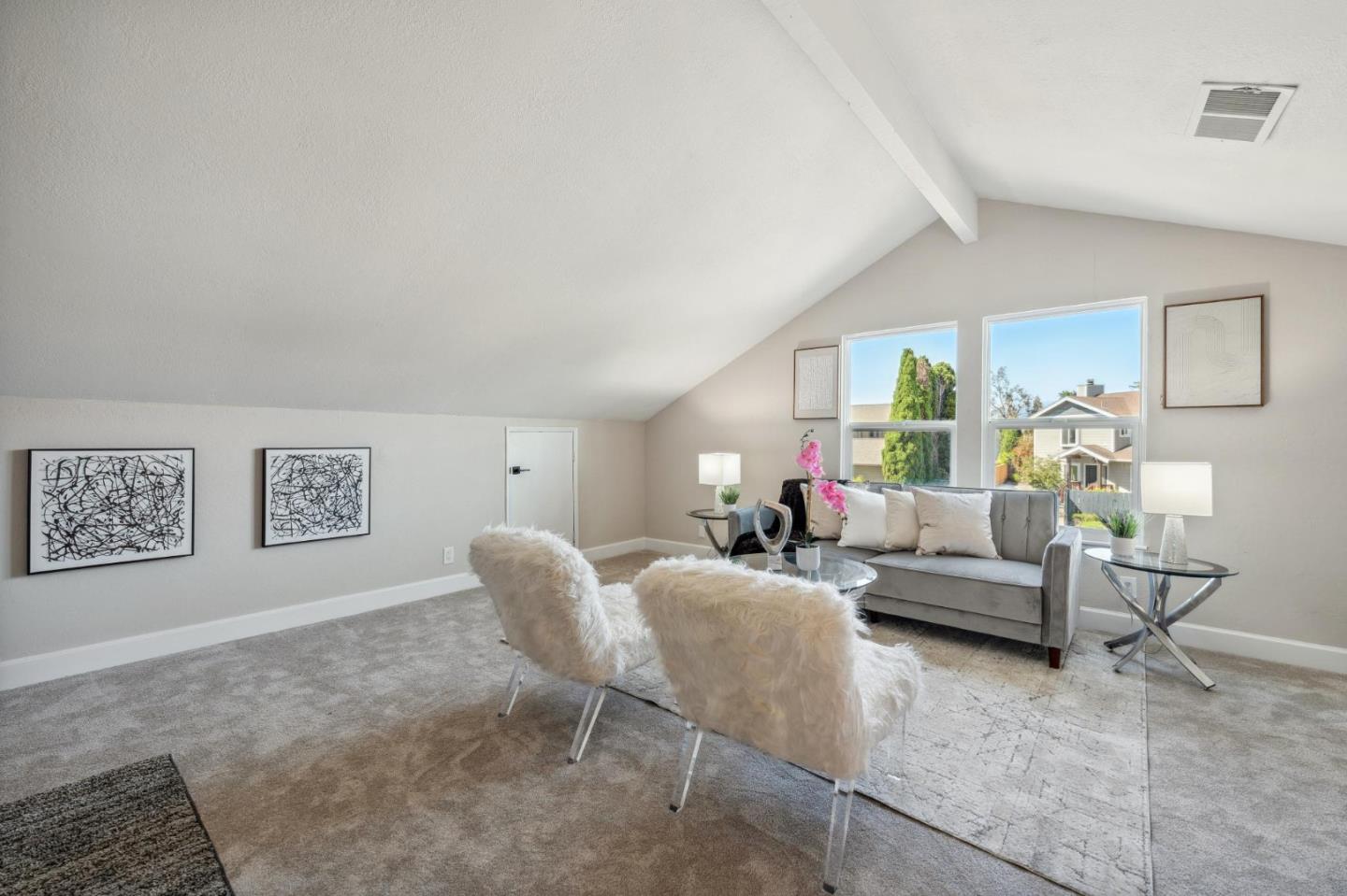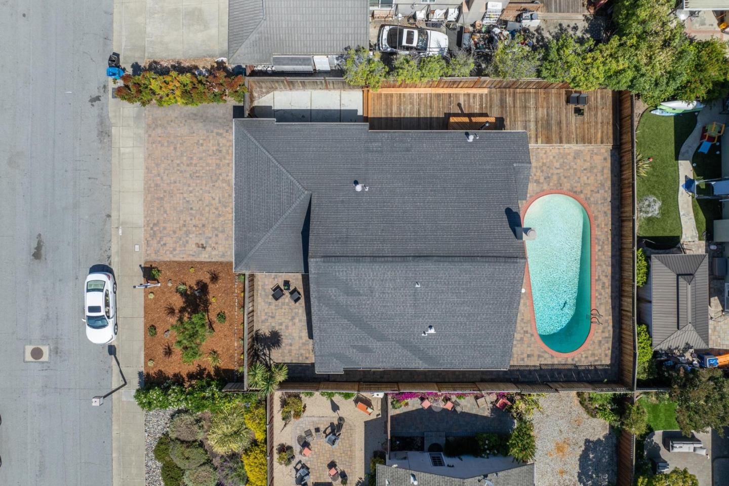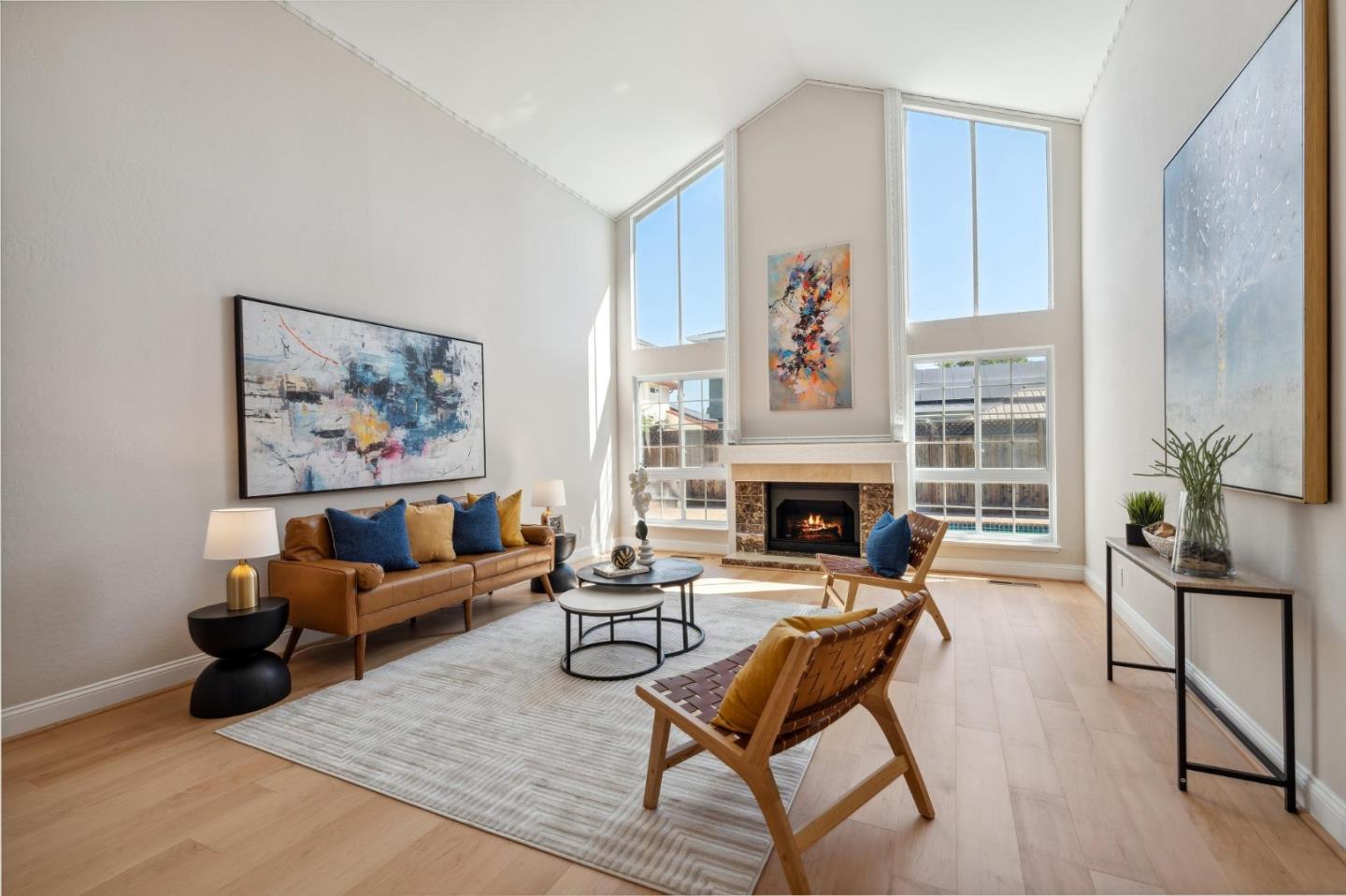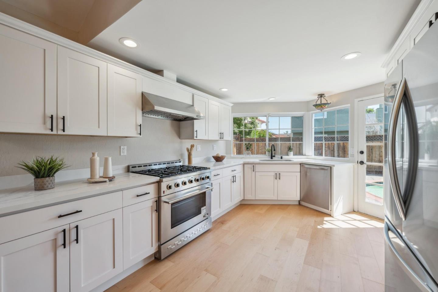 Centrally located on the Mid-Peninsula between San Francisco Bay waterways is an updated home with a dramatic living room, brand new kitchen, stylishly updated bathrooms, private family room and grounds with a pool, deck and paver patios and driveway. Drama begins at the foyer with a striking view of the living room with cathedral ceiling, focal-point fireplace and floor-to-ceiling windows with views of the sparkling pool. Softly hued walls, white doors and trim, black hardware, wood laminate flooring and plush carpeting create the backdrop for grand living spaces, lovely entertaining venues and private bedroom retreats, including a primary with sliding doors to the back patio. Updated kitchen and bathrooms feature new cabinets, fixtures, appliances, French and sliding glass doors, and tony stone and tile surfaces. An open dining area extends to a large deck, and the loft/family room provides a great space for family fun or a private office. Near Marlin Park, Nob Hill and the Bay Club.