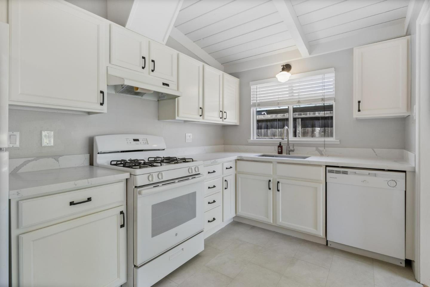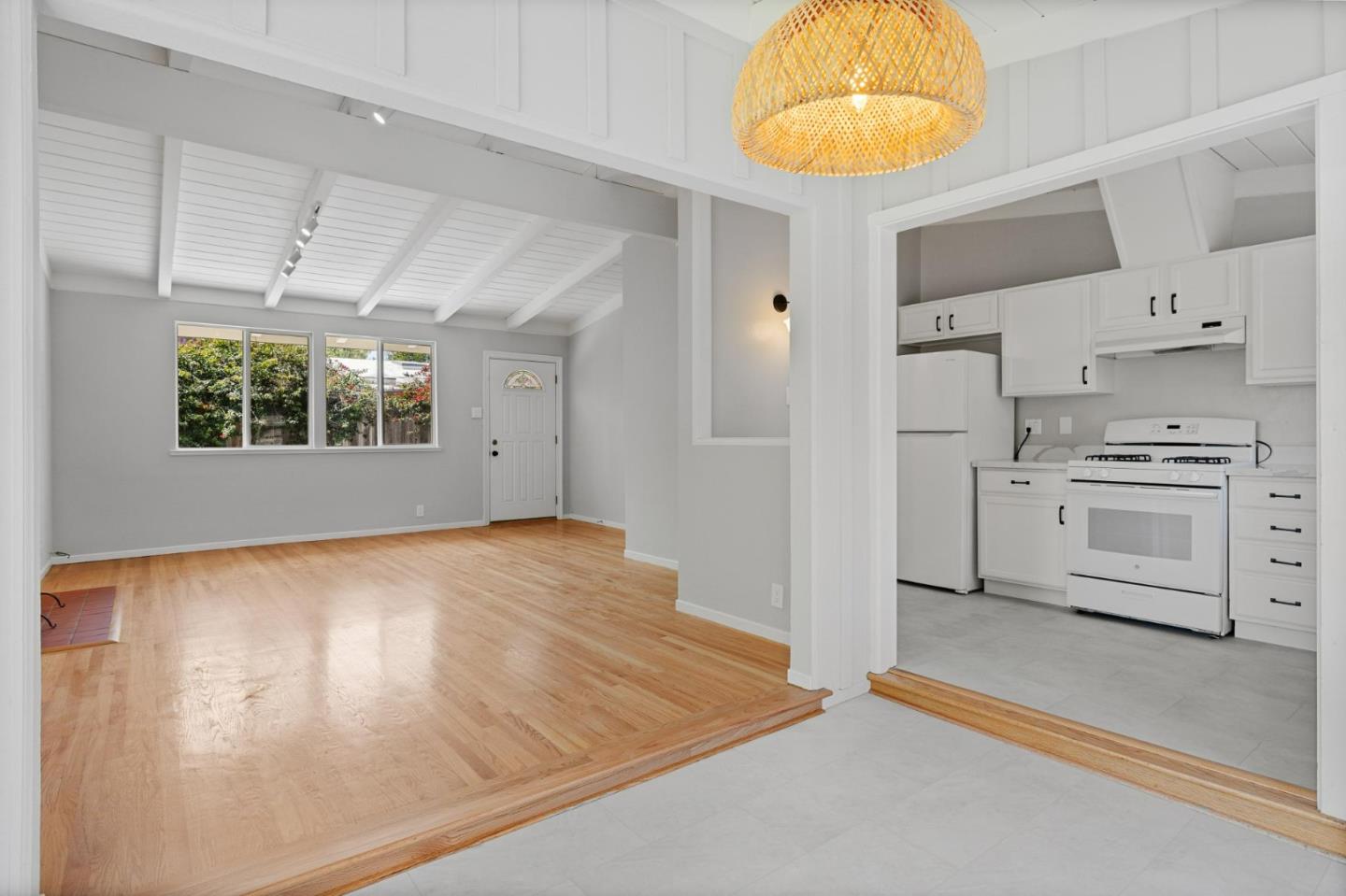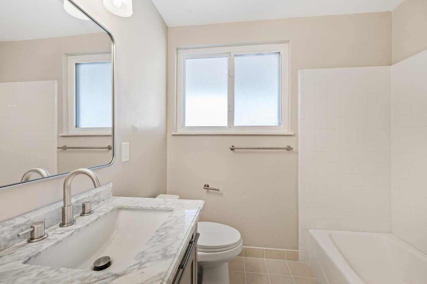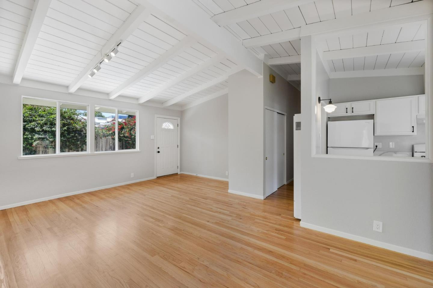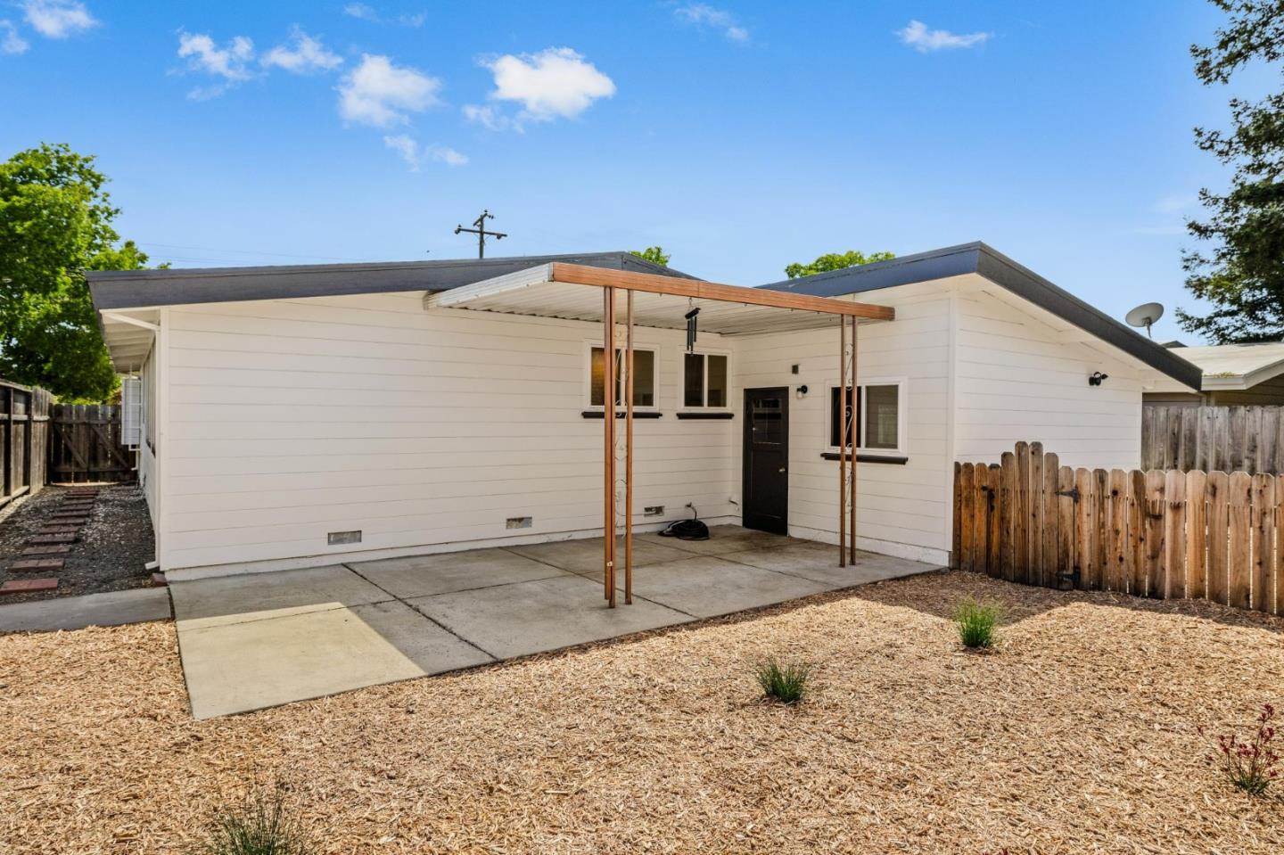 With high ceilings and refinished hardwood floors, this bright, appealing home showcases understated charm along with stylish updates. The living area features new lighting and a working fireplace, with large windows that illuminate the space from two exposures. Looking out onto the sizable front yard, the sunken dining room has new contemporary flooring and lighting, and the semi-open kitchen boasts a gleaming new quartz countertop and sink. Three good-sized bedrooms lie at the back of the house, and updates to the one and a half bathrooms include new toilets, vanities and lighting. Behind the house, a patio and ample garden promise complete privacy. This charming house sits in a quiet neighborhood, with scarcely any traffic, yet close to freeways, shopping and all the amenities of downtown Sunnyvale.